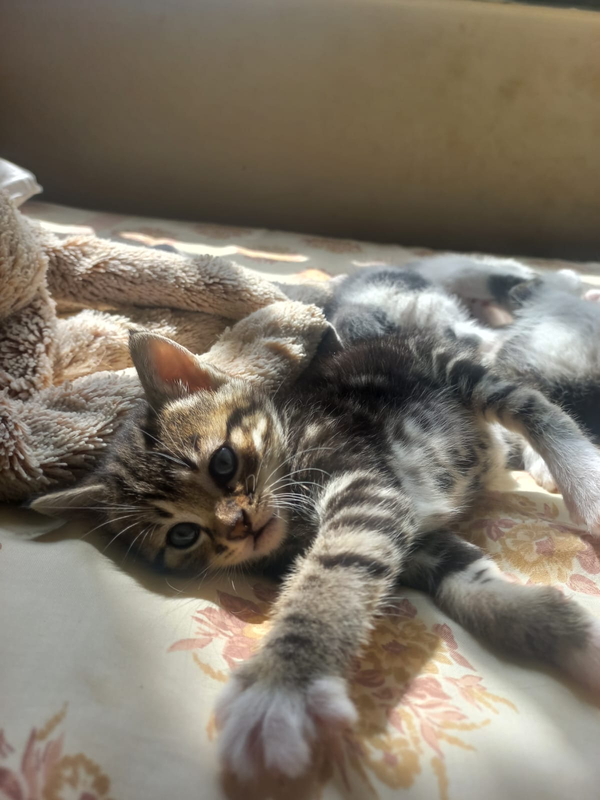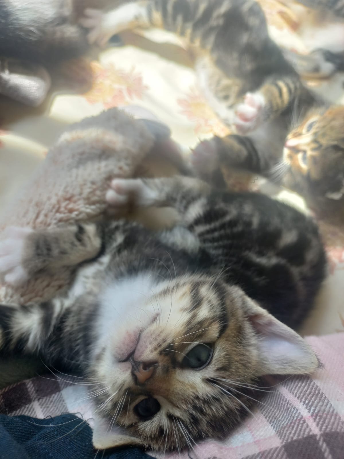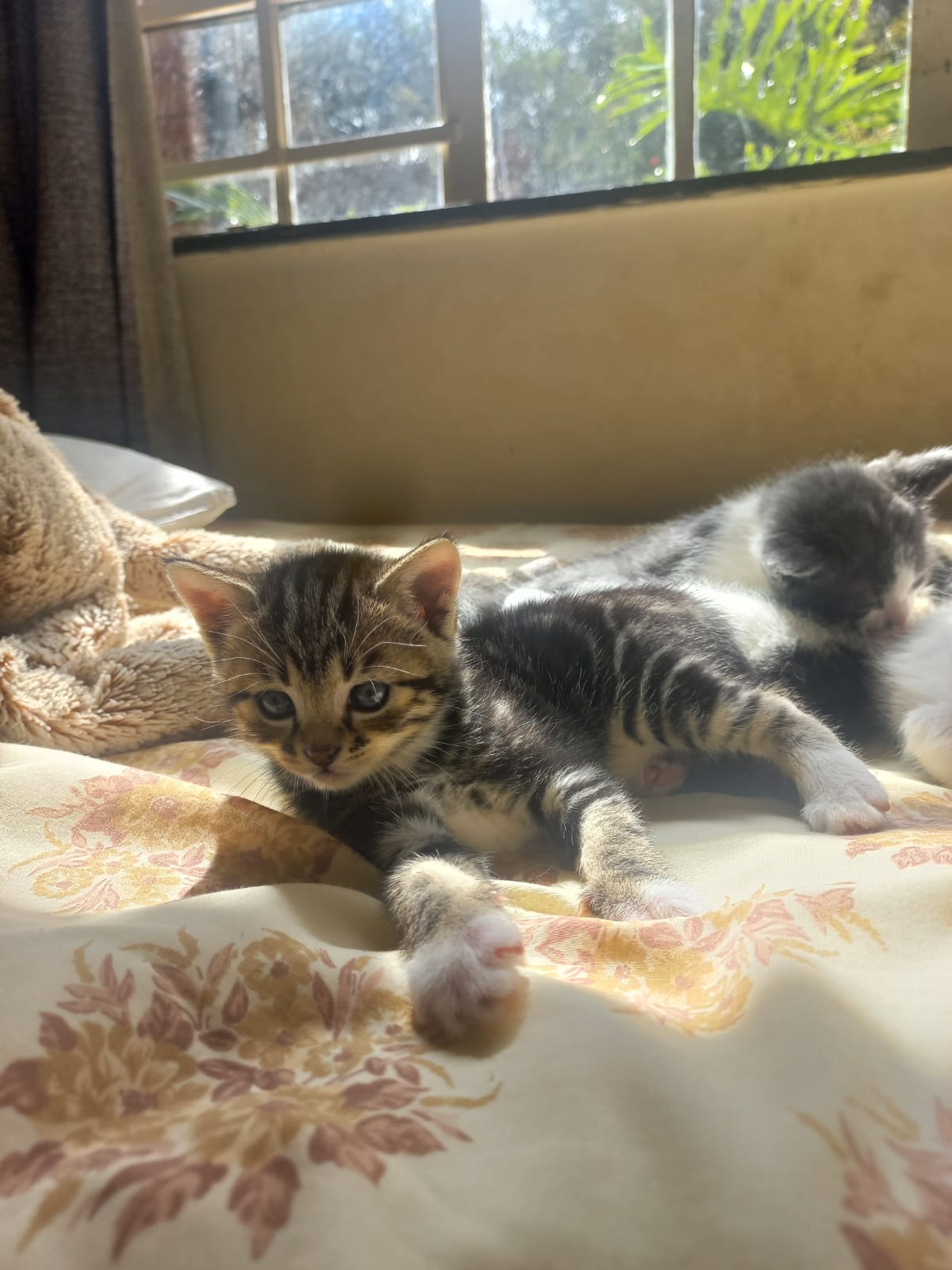 Holly is a female kitten that was born on the 20th of March 2025. She is drinking milk and starting to eat dry kitten food. Her personality, that is just beginning to shine, is so adorable. Holly is very playful and affectionate. Plus her white socks/mittens just give her a little more sparkle of character. Looking for a good home for this little girl.