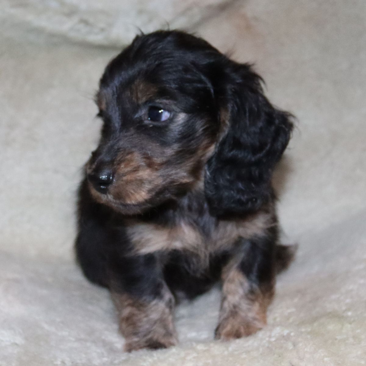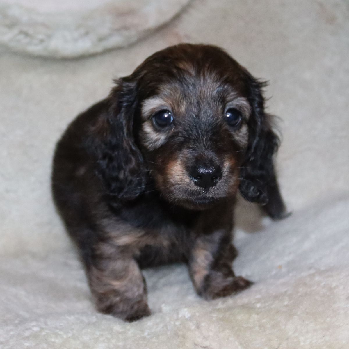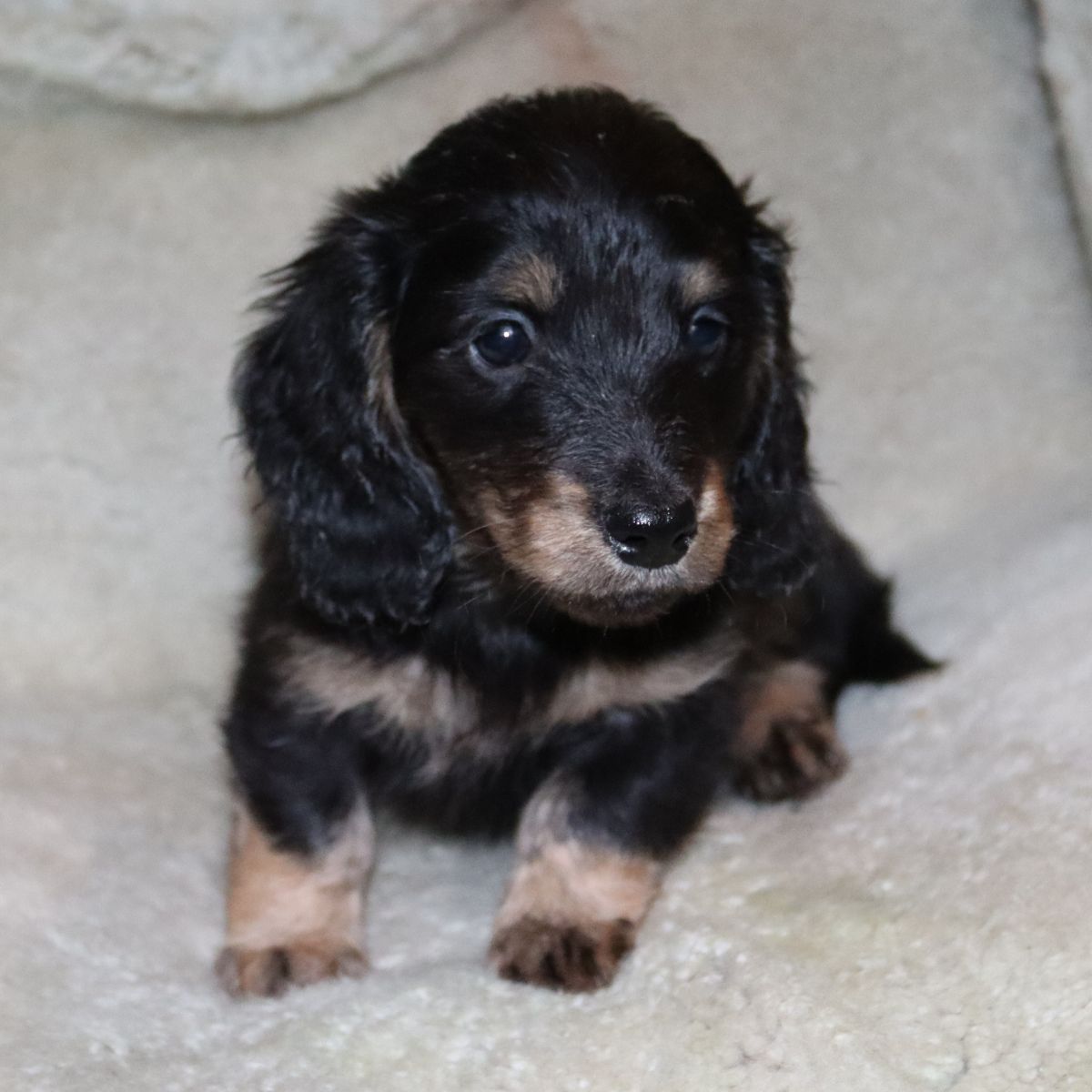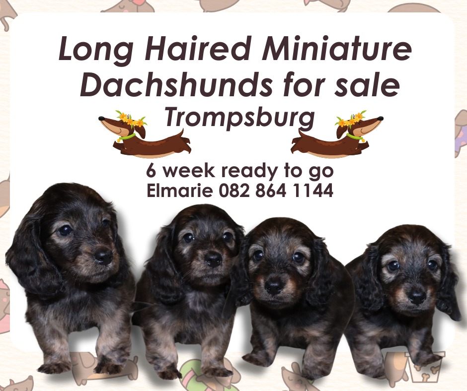 4 long haired miniature dachshund for sale 6 weeks ready to go at 8 weeks . 3 boys and 1 girl