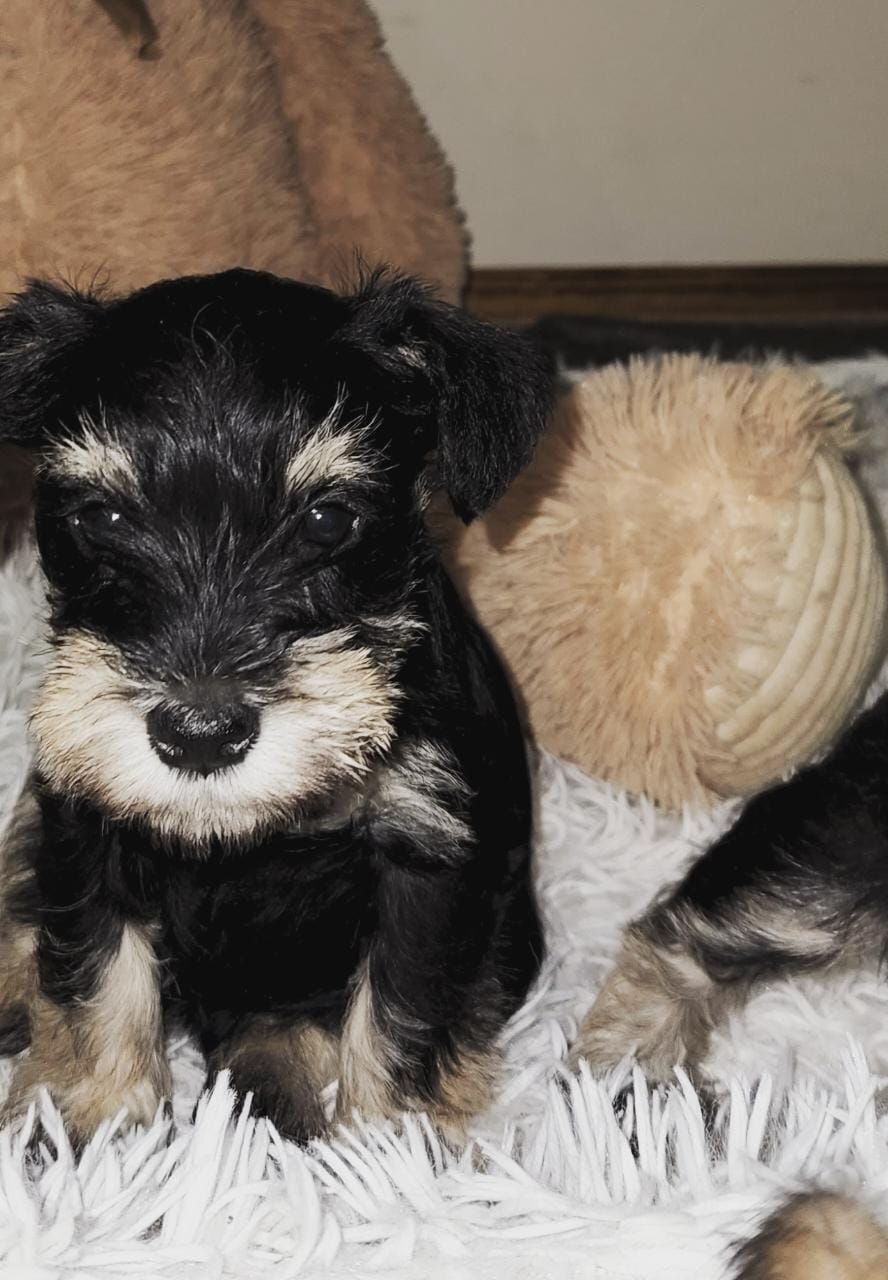 Beautiful pure breed schnauzer puppies for sale. Ready for new home 8 weeks old. Female 4500 x 1 males 4000 x 1. Vaccinated and dewormed