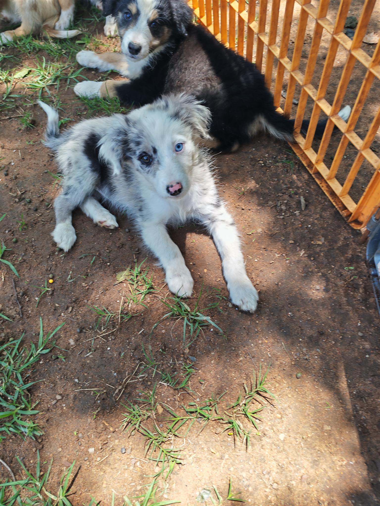 Mom is a chocolate Tri Dad Merle pups have Merle Bloodline