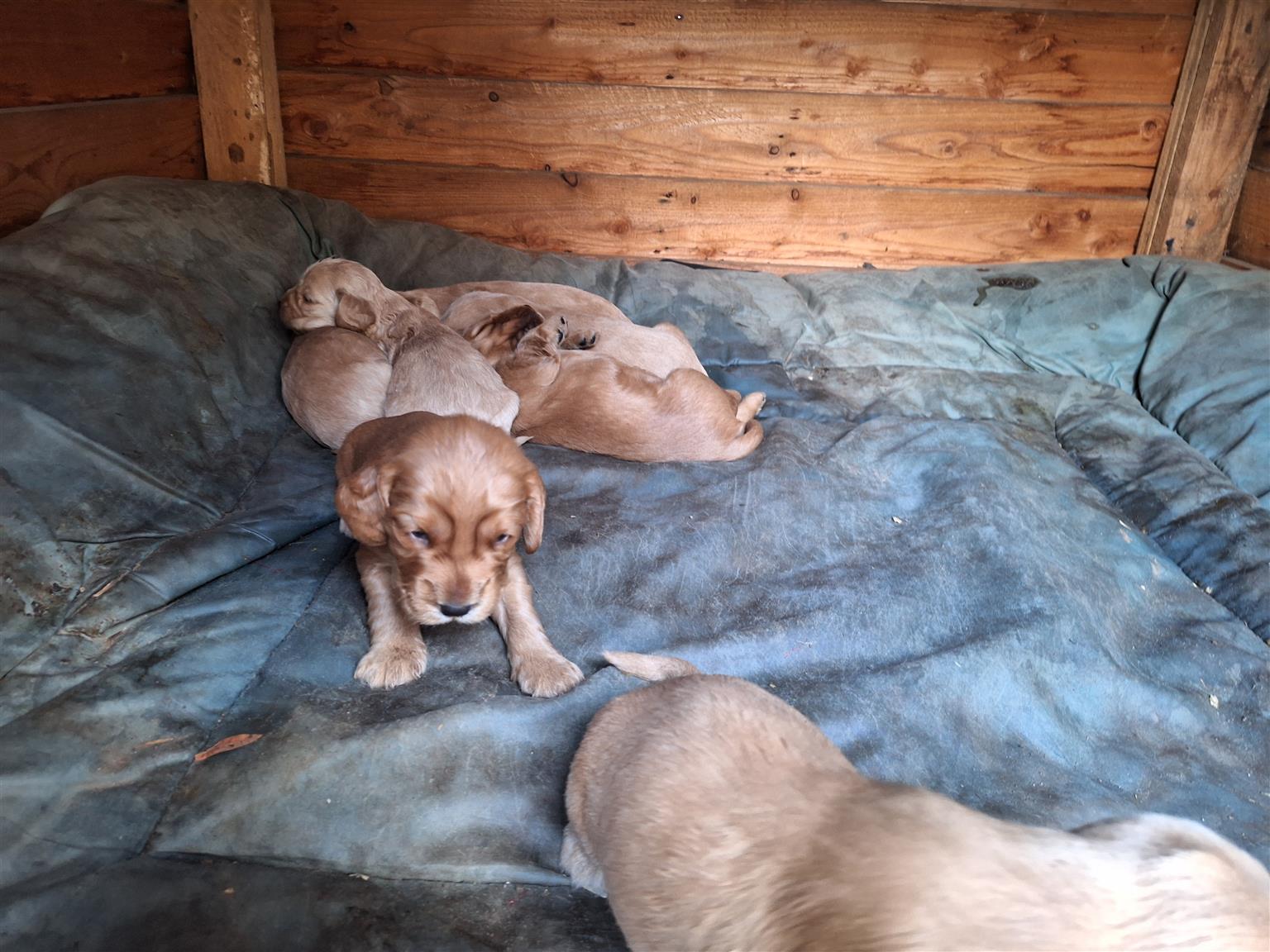 Golden cocker spaniel puppies available. 8 weeks old. Pure bred. Whatsapp me for more detail or photos. Spaniels love water and children. I have Golden cocker Spaniels for more than 25years.