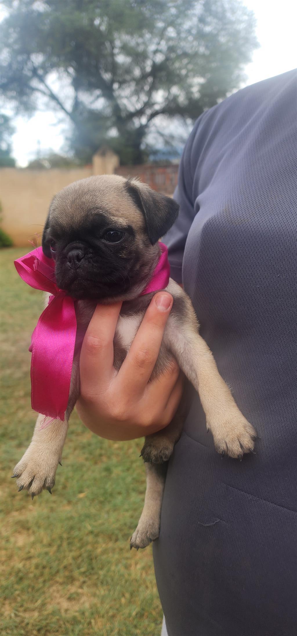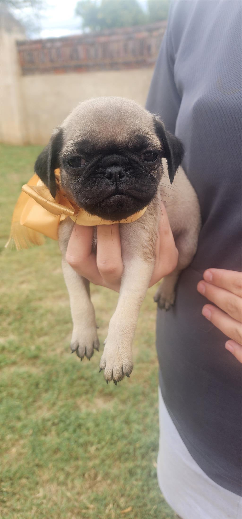5weeks, fawn puggies. Will be ready at min age of 8 weeks old . More details: