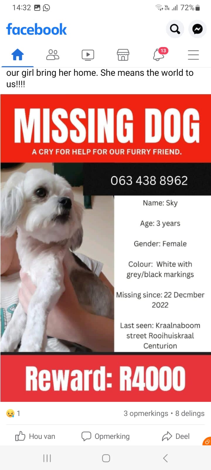 White and black/grey 3 year old female poodle X pekinese stolen from Kraalnaboom street Rooihuiskraal north Centurion. Please contact Natasha urgently on 0634388962view more