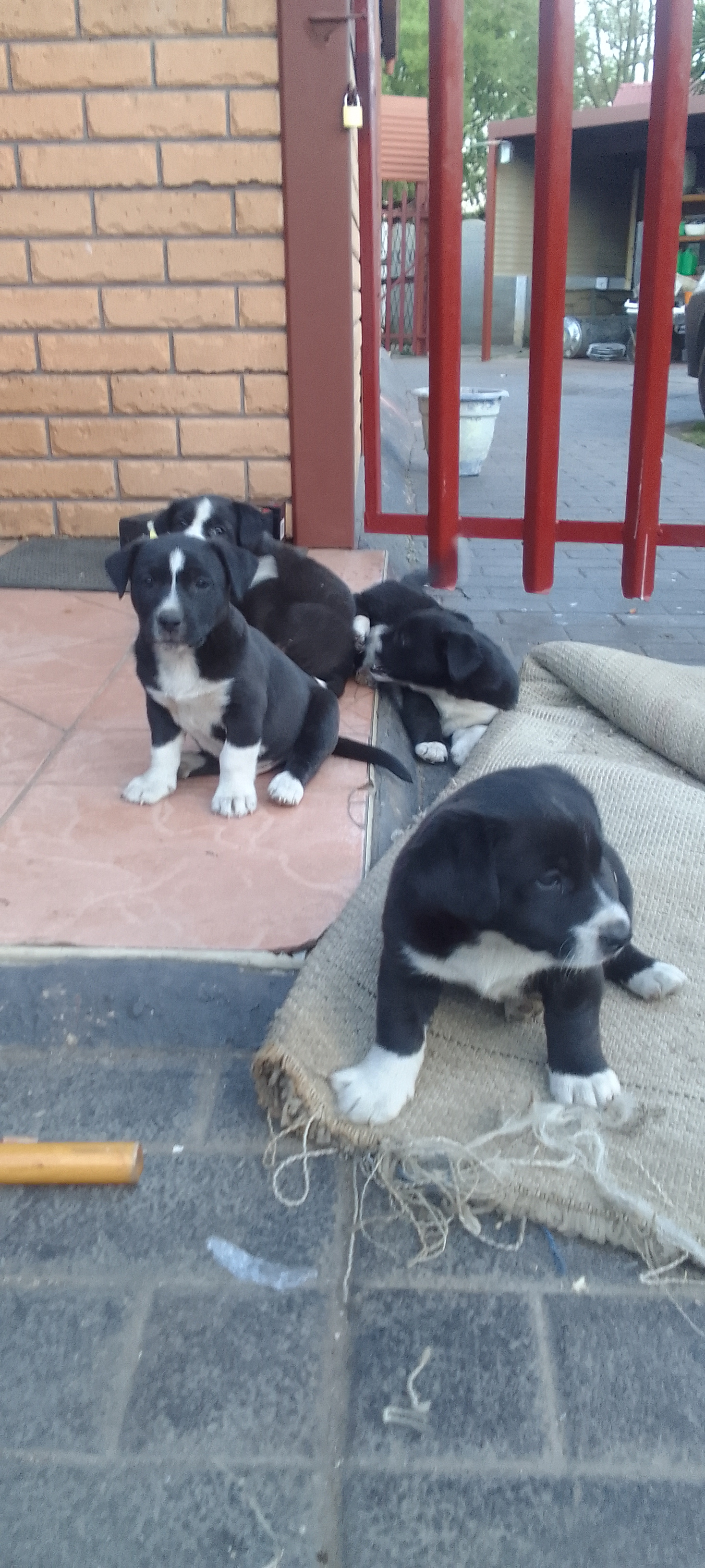 5 Males left. Puppies are 5 weeks old and will be ready at min age of 8 weeks old. They eating and drinking on there own. They also haven't had there shots yet.