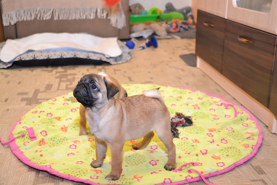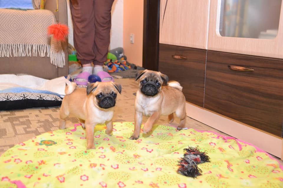 9 weeks old Pug puppies , puppies have been raised in our family home around children and adults and used to daily noises. puppies will leave with change over food and a blanket with mom's scent on.