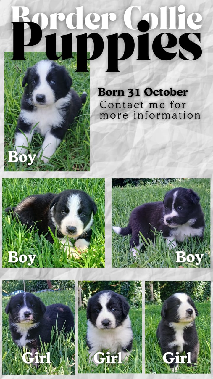 Very cute black and white Border Collie puppies. Friendly and energetic. Born 31 October ready at weeks