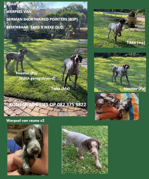 Beautiful GSP puppies for sal only 2 males left. They are big and ready for their new forever homes. Date of birth 19-08-23