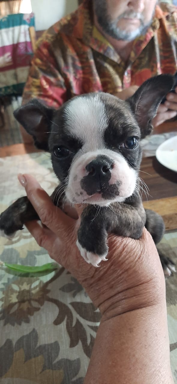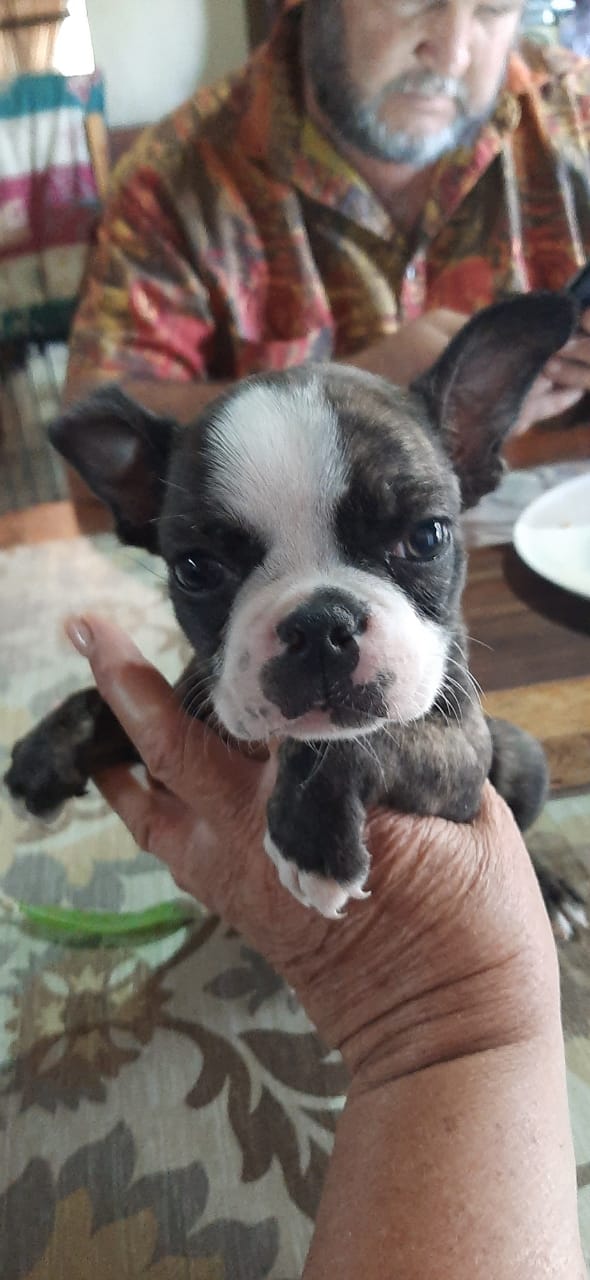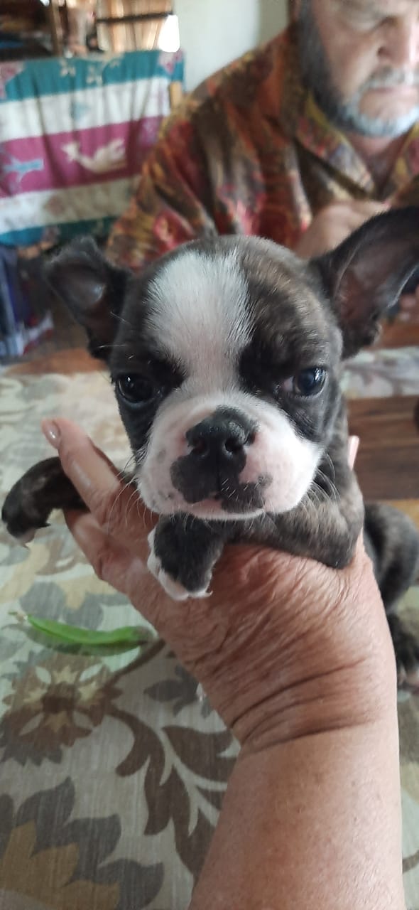 Frenchton puppy 1 brindle male deworm and innoculated 9 weeks old. More details: