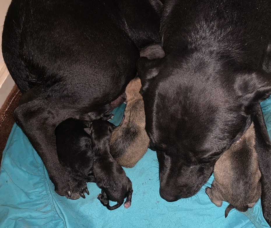 German Shepherd X Labrador puppies 1 male and 4 females available. DOB 11/09/25 and will be available from 8 weeks old. They will be dewormed inoculated and vet checked at 6 weeks old vet cards included. Puppy picks are done at 5-6