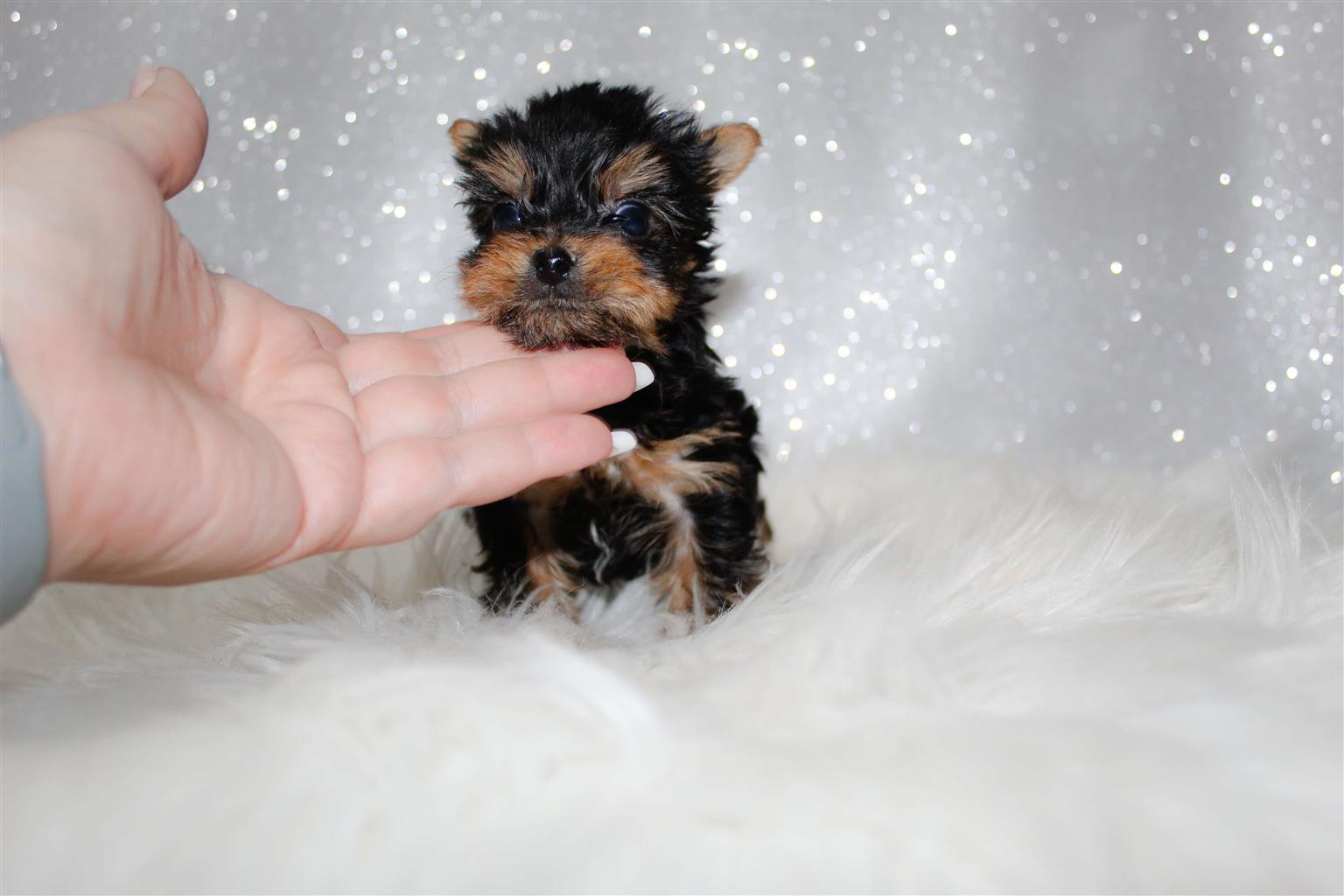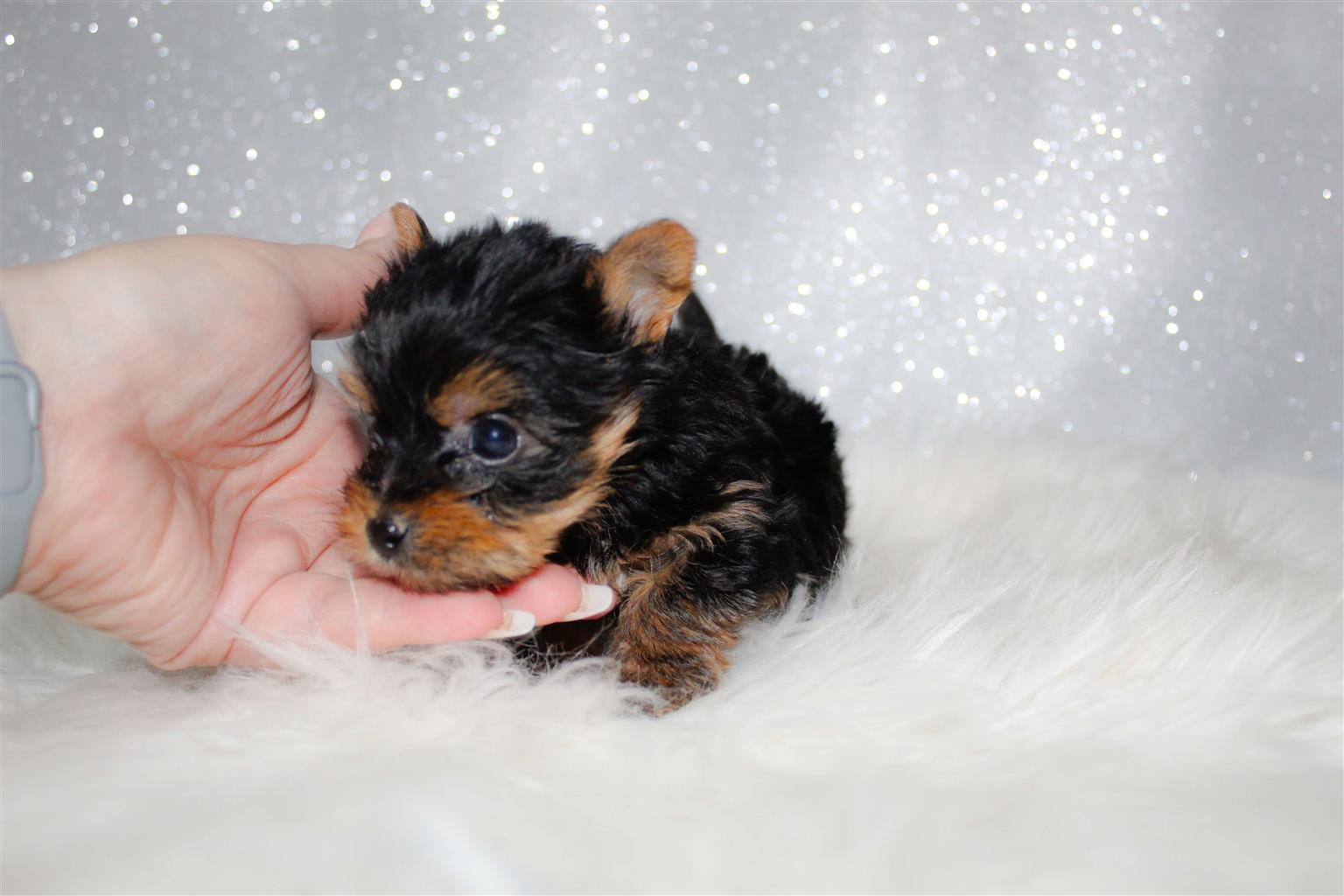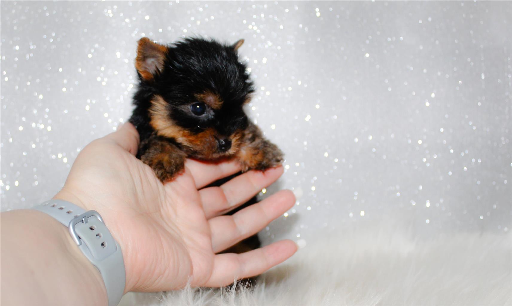 Stunning Pocket size female yorkie available. Vaccinated, dewormed and microchipped. She is 8 weeks old. Parent available for viewing.