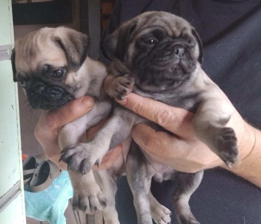 Two pug fawn females available. They are 8weeks old had two vaccine 4weeks and 7weekand dewormed. Each puppy gets a puppy hamper.