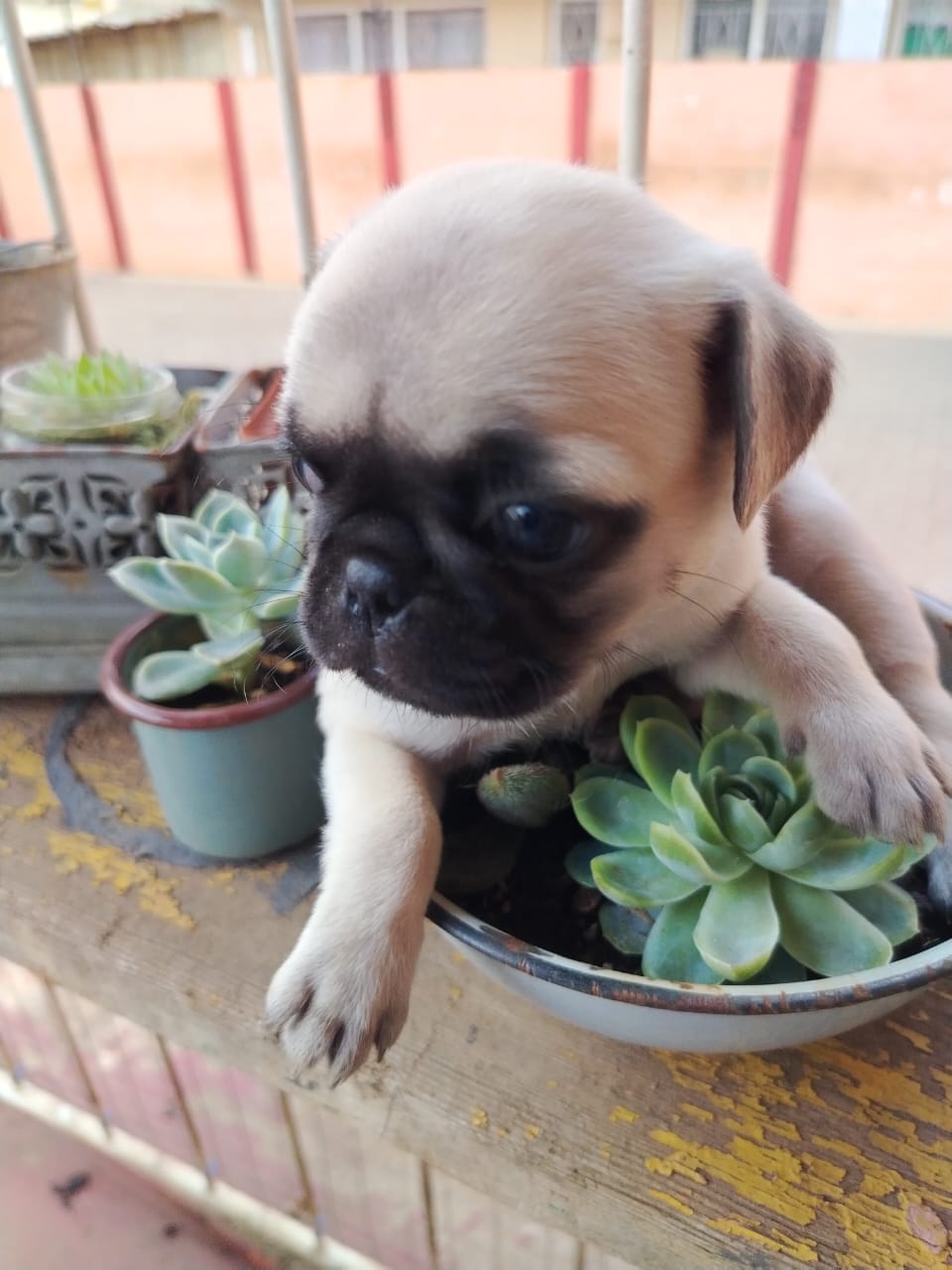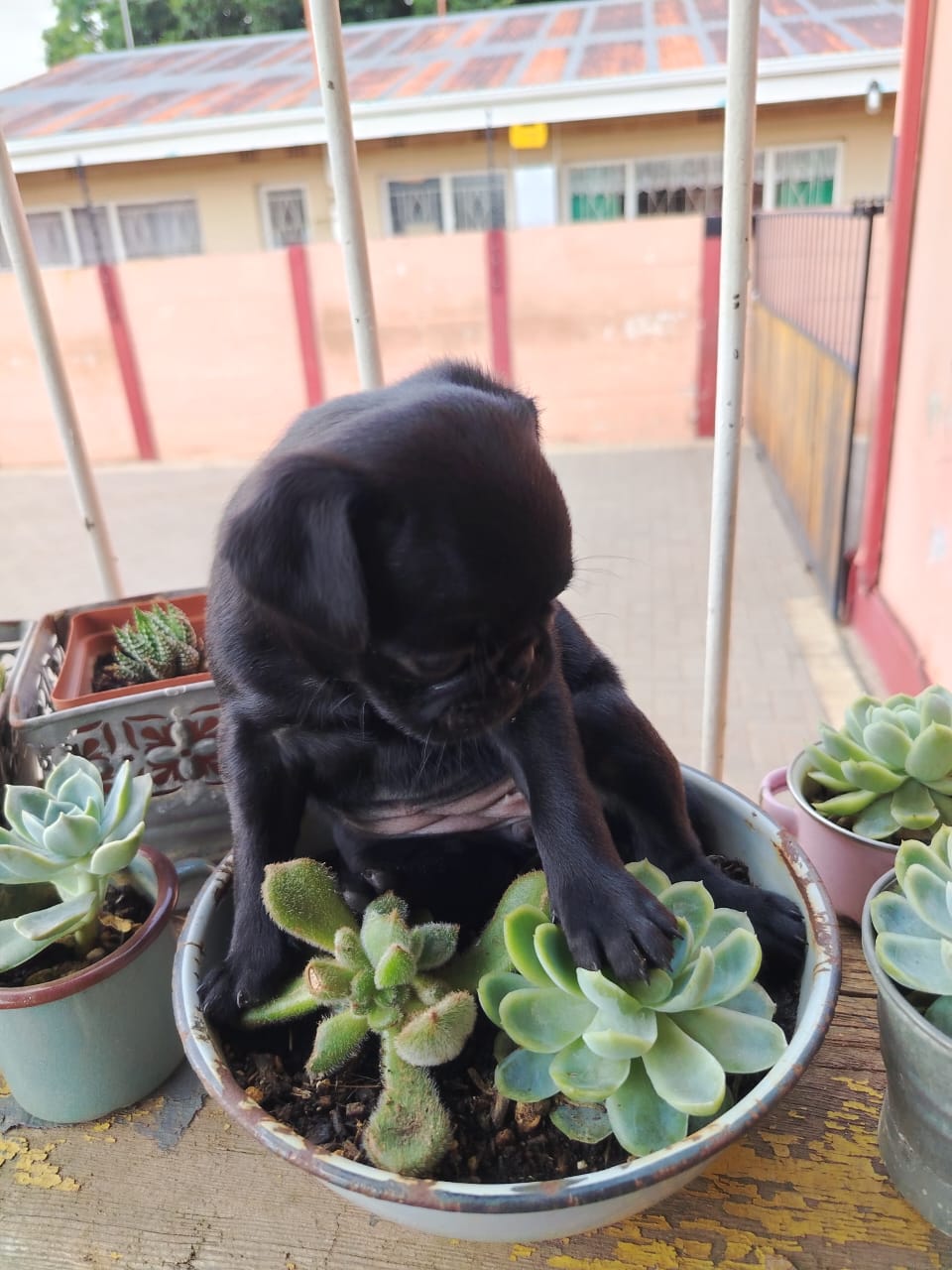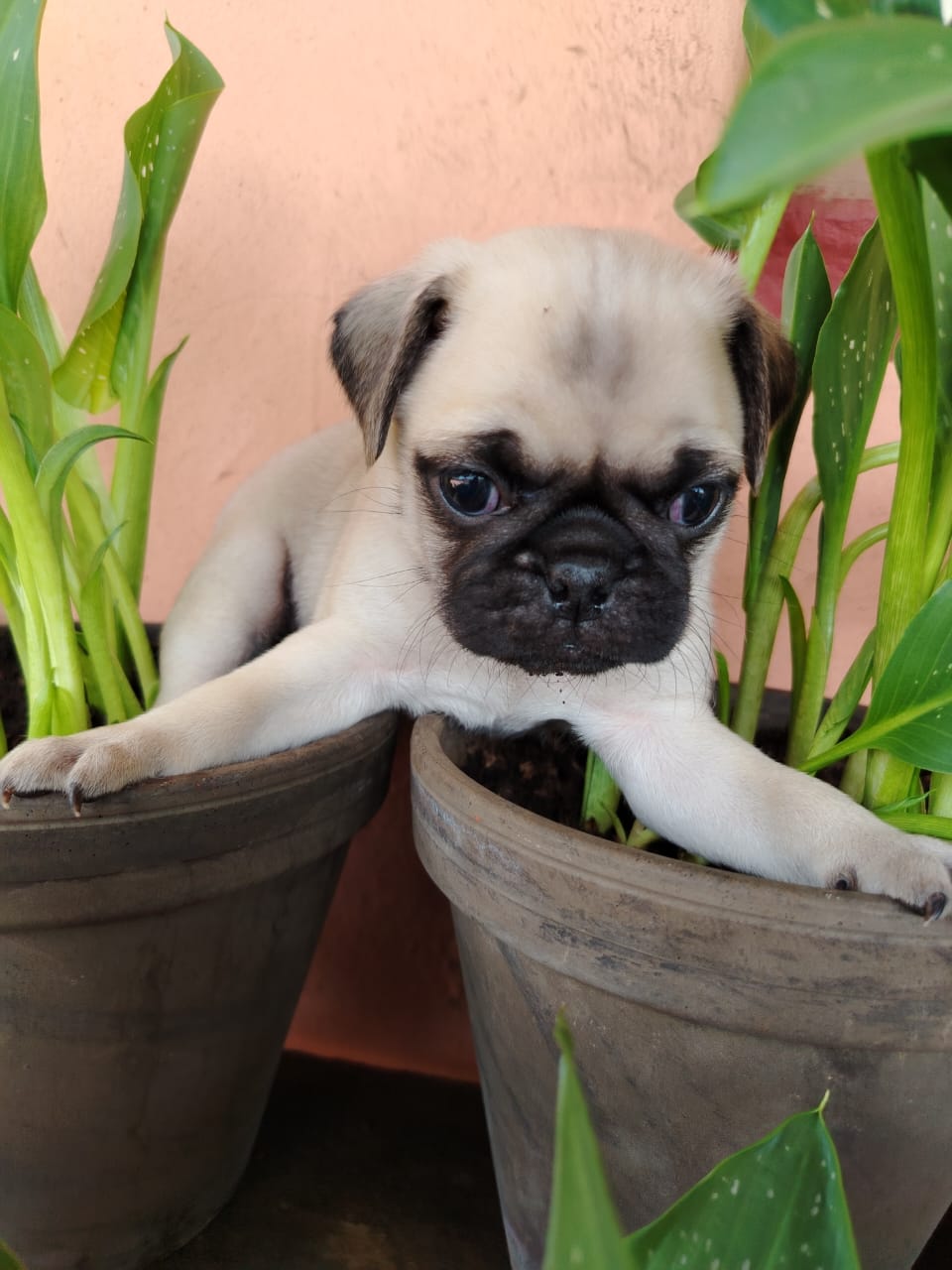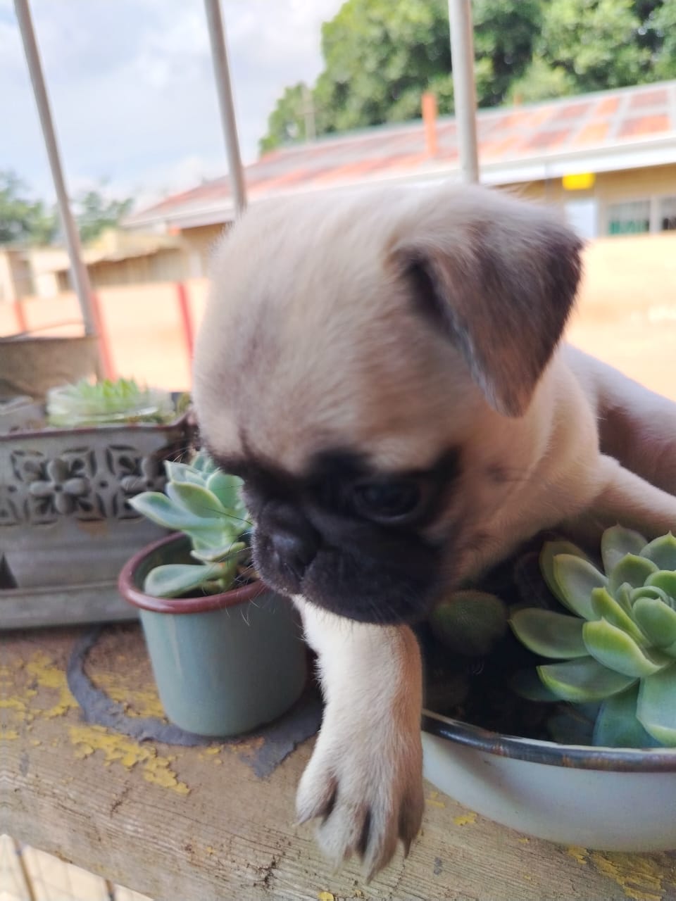 Two fawn pug male and one black female puppies avaible Puppies has been vaccinated and dewormed by the vet .They are born on the 3 September.