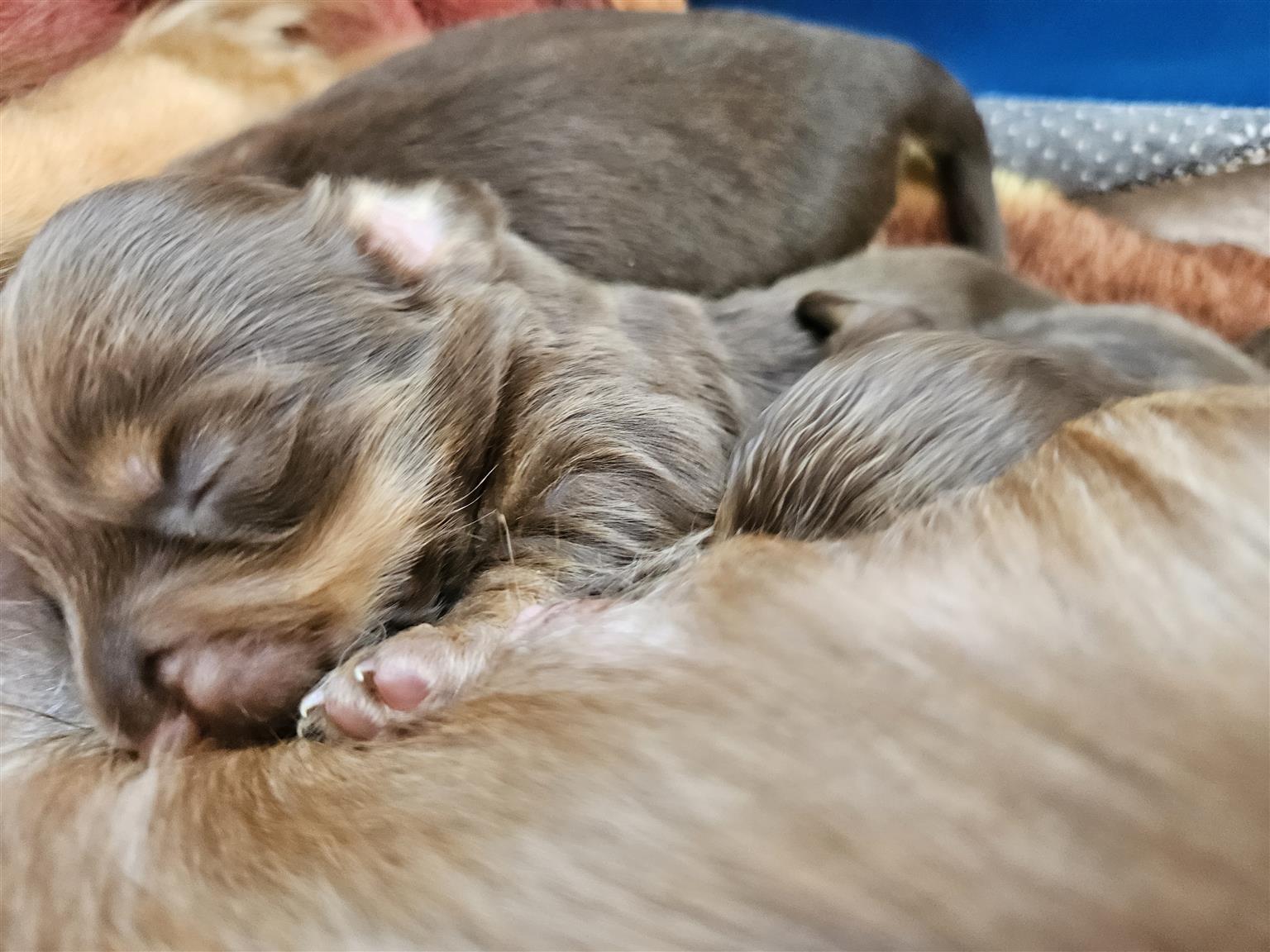 Dachshund Puppies Avail. Unique mini long-haired. Ready for Bookings. 2 shaded creams, 2 mini chocolates & 1 chocolate male. From kusa registered parents. Parents Avail for viewing. Healthy active PuppiesBor. 28th April, will leave home with their vet health certificate, 2nd innoculations. Dewormed & microchipped at 8 weeks. As well as a travel bag. (We send puppies nationwide) situated in Pretoria East. R8000