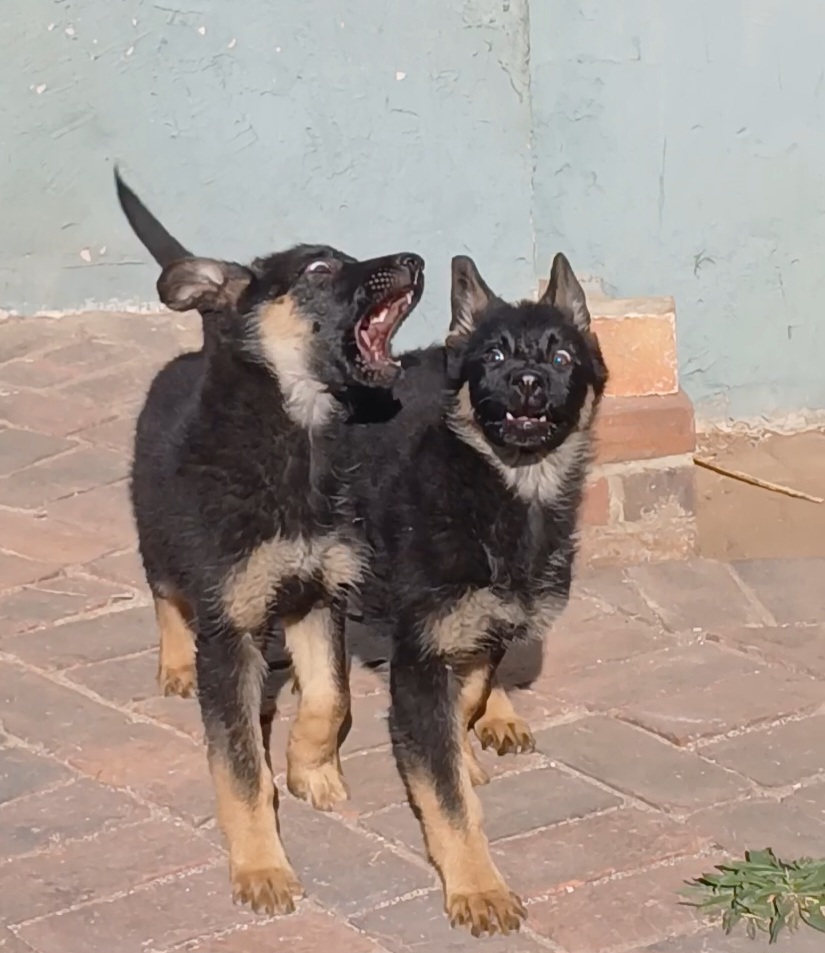 Pure bred German Shepard puppies looking for a new loving home. They are 3 months old. These cuties loves children and are good dogs. WhatsApp me on 084x5622x831 for more info
