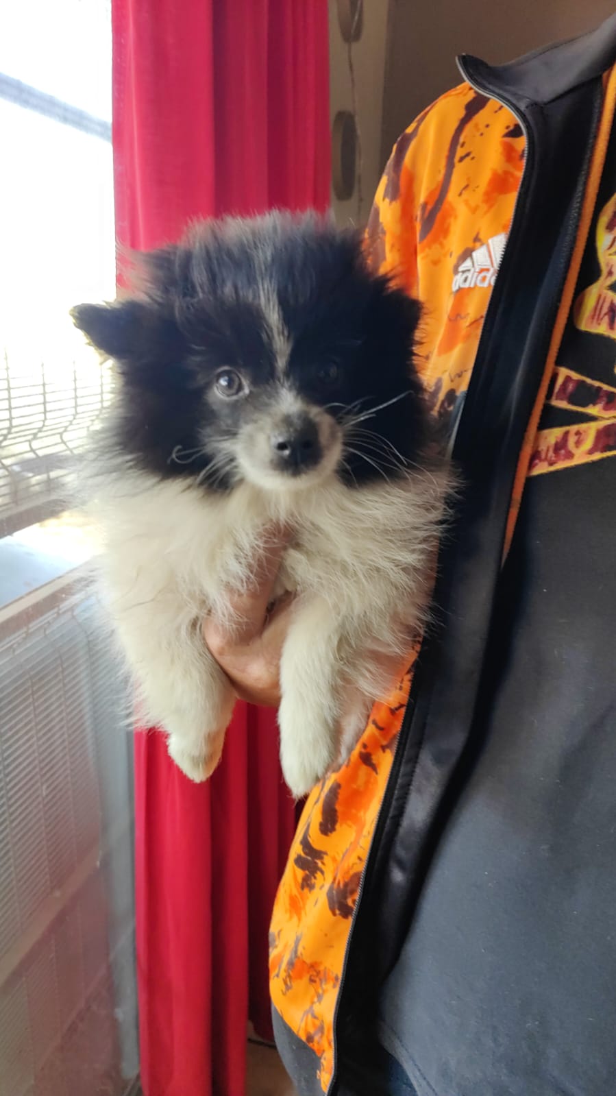 Parti pom male, black and white, had 2 vaccines, 11 weeks old