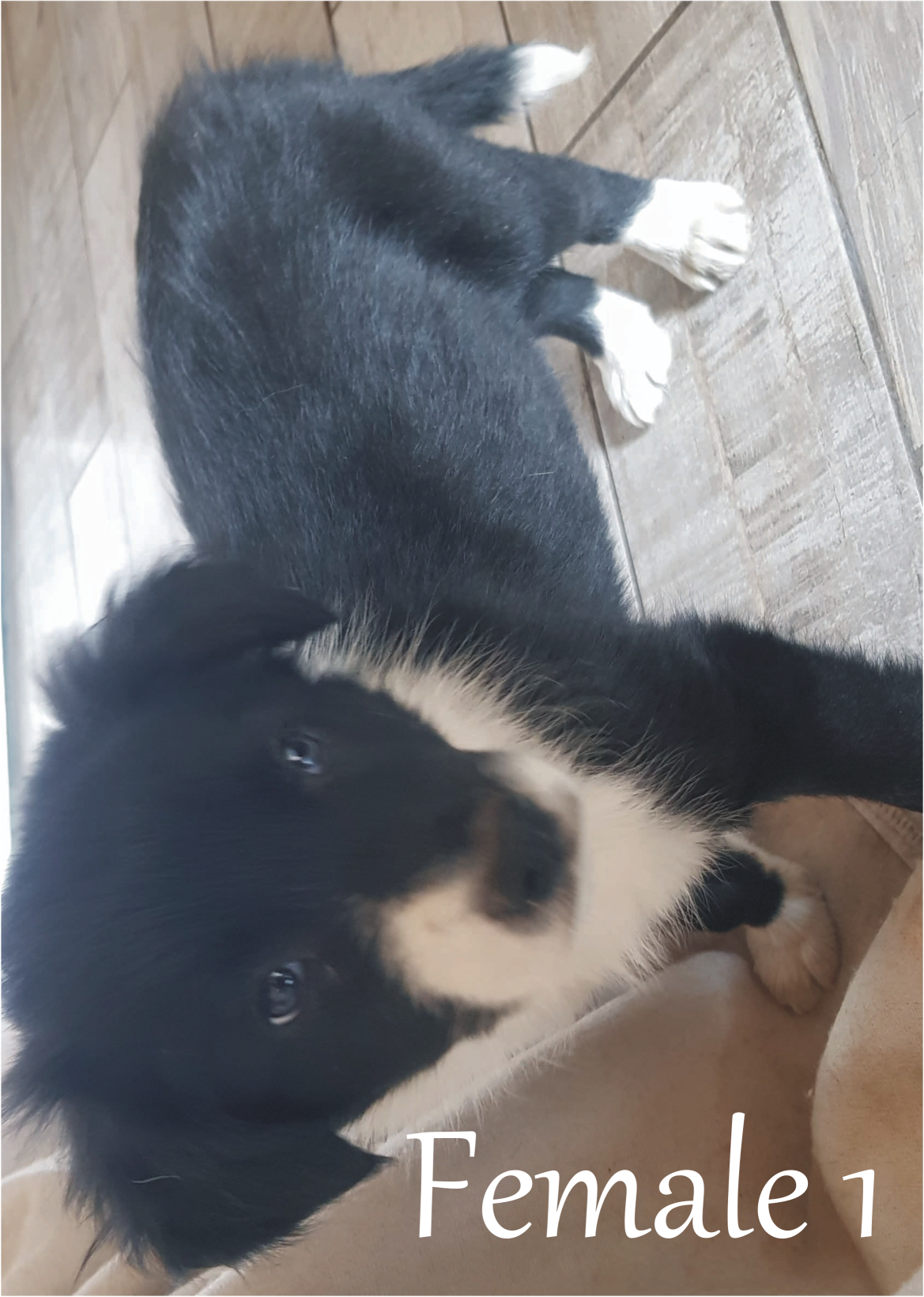 8 week old border collie puppies. There are 5 females and 2 males. All puppies have been checked and vaccinated.