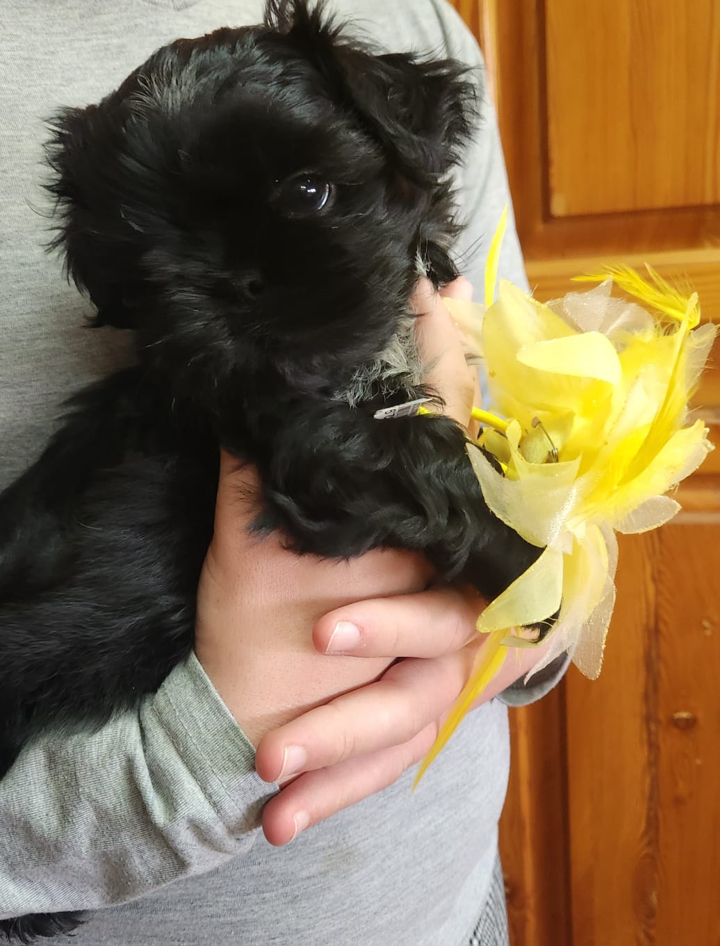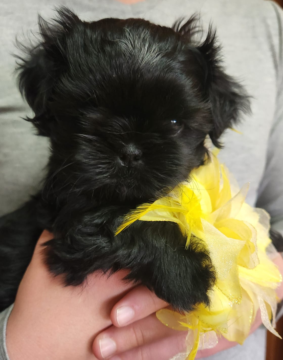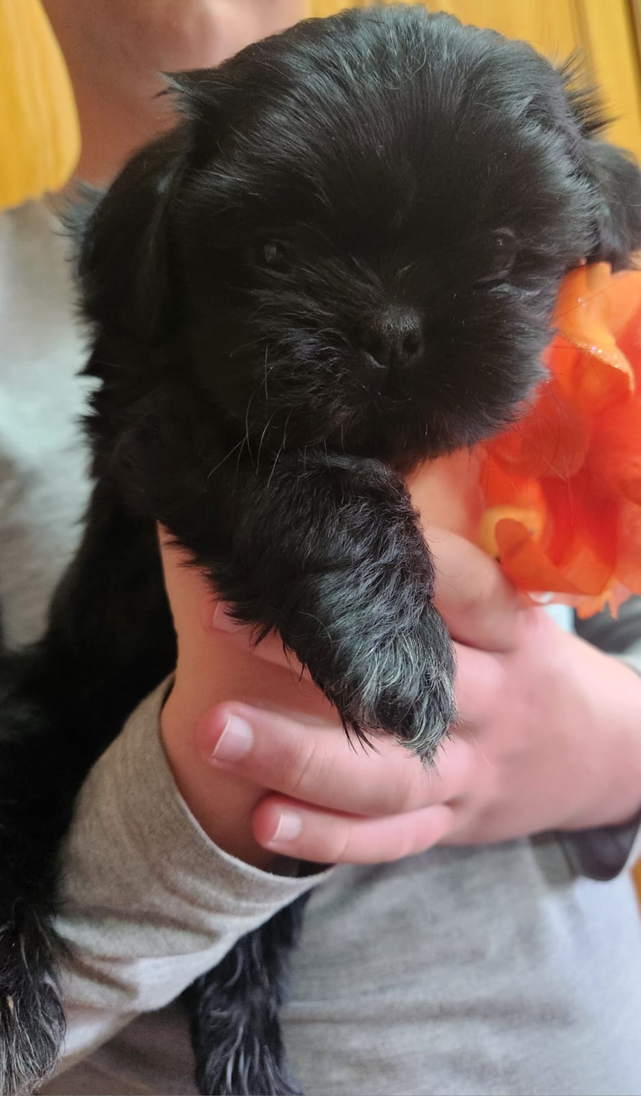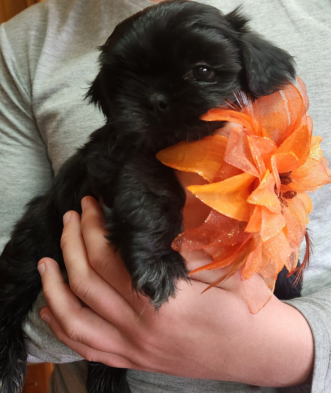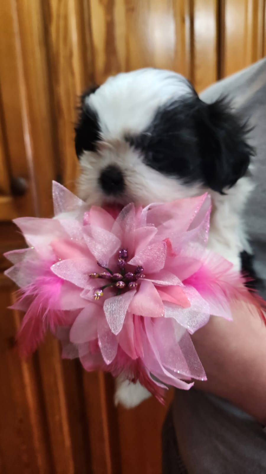 Gorgeous shih tzu puppies with silky soft fur to warm your heart available to approved homes. Lovingly raised in our family home where their parents are available to view. 8 weeks old. Vaccinated and dewormed. Black males and spotted female.
