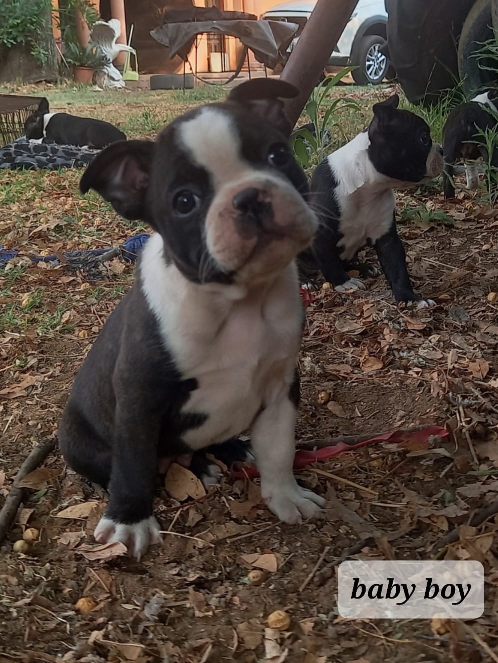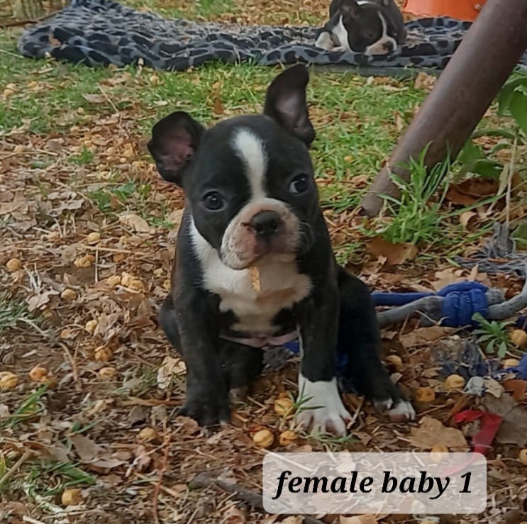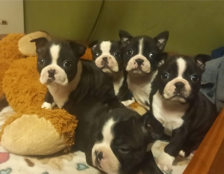 Pure breed boston terrier puppies looking for a loving forever home. Dewormed and vaccinated 4 females and 1 male. They are very loving and playful and used to cats and other dogs.