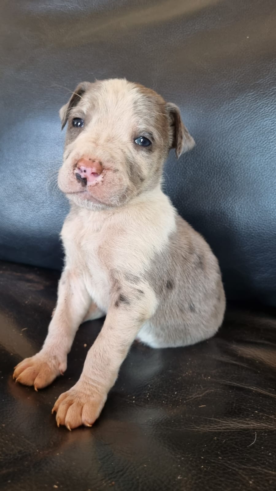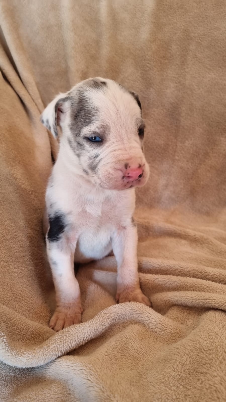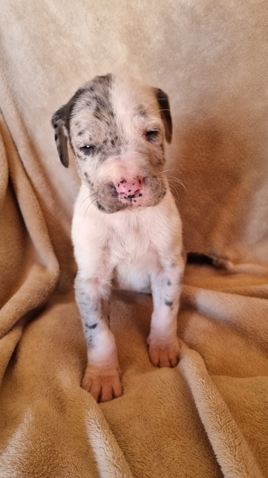 Canine SA registered Great Dane puppies. From Niemandia kennels. Colours: Black, Merle R6000 and Merlequin puppies are R6800. Innocolated and dewormed by Vet. The puppies are 8 weeks of age and ready for there new owners from July. Great Danes are typically good family dogs and do well with children when trained and socialized from an early age. Contact for more information.