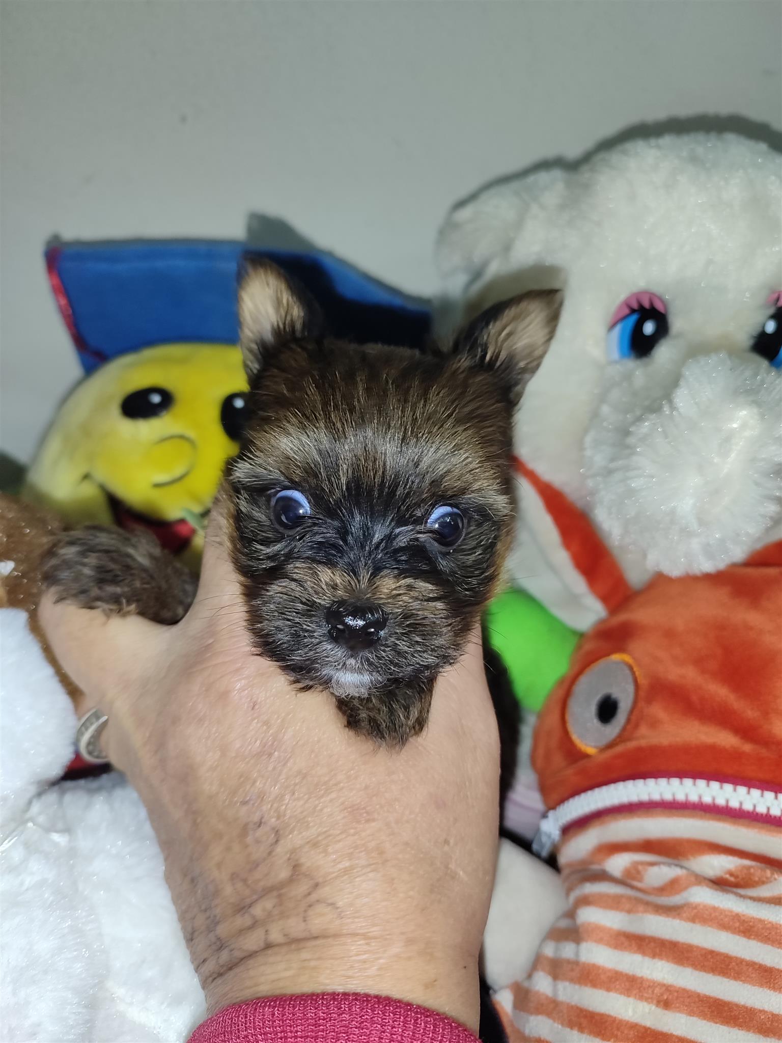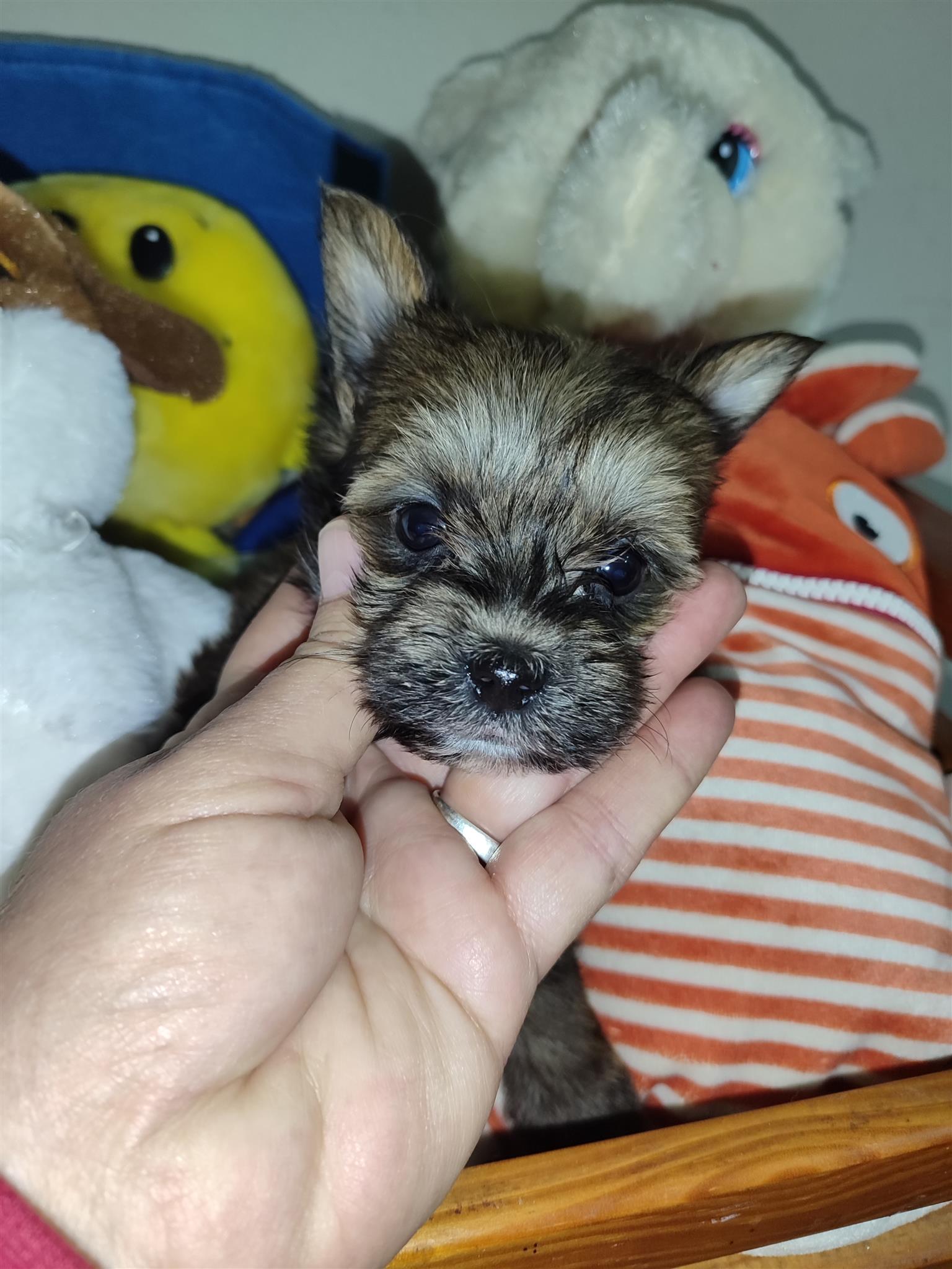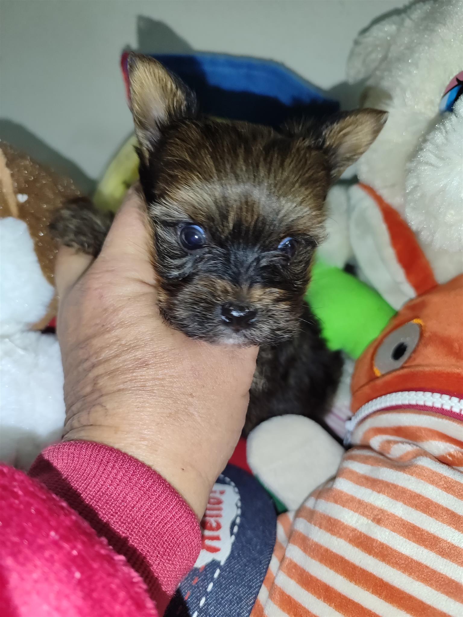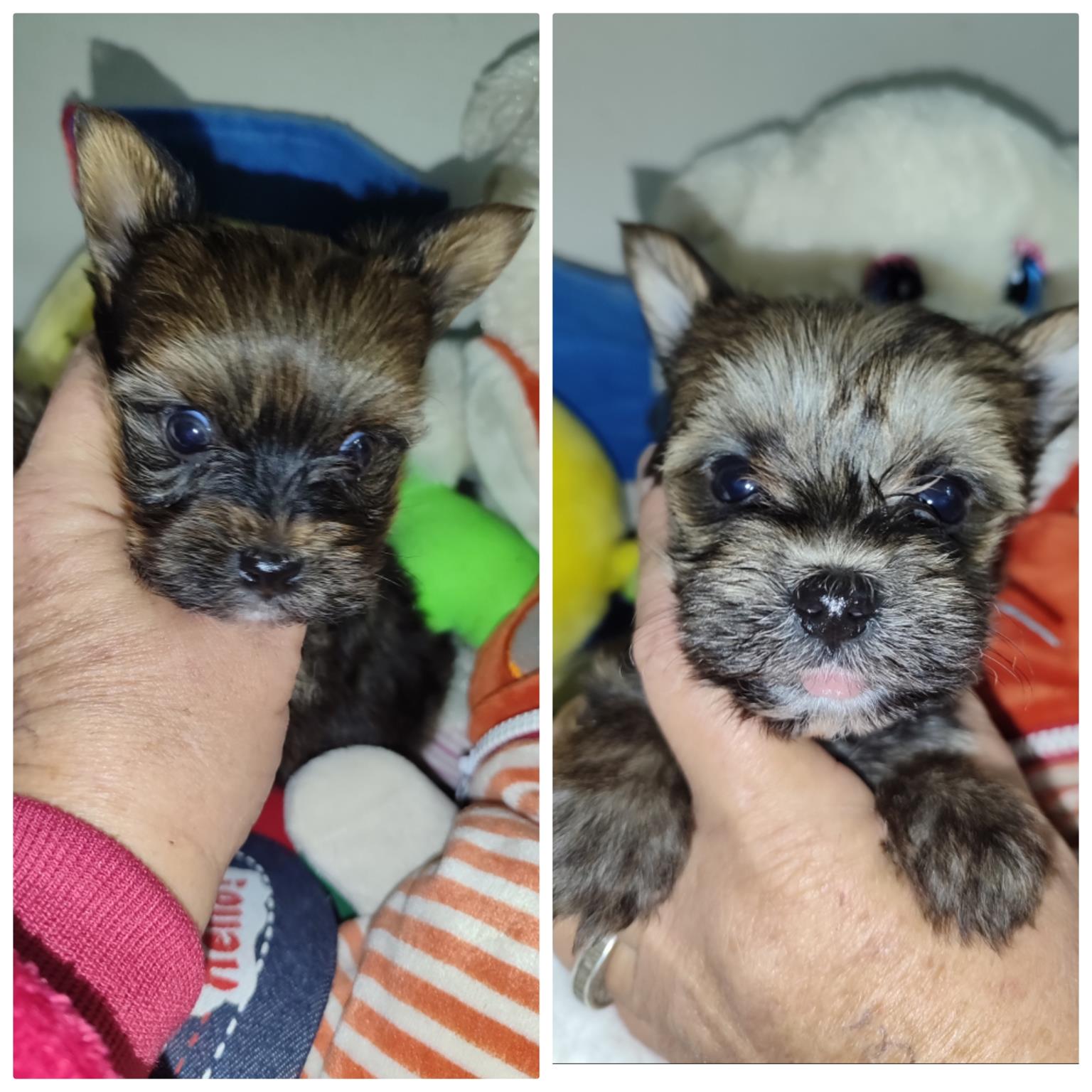 2 pocket size yorkie male puppies. They are very very tiny. Have been vaccinated and dewormed comes with vaccination card.they were born 11/03/2025. Dark and light sable colours.