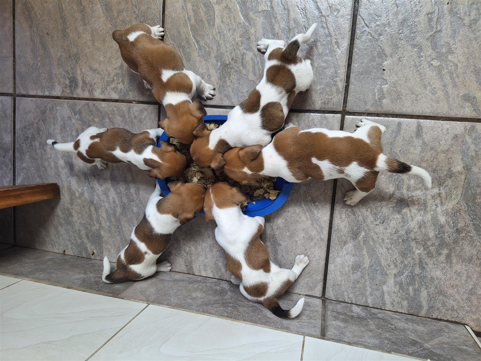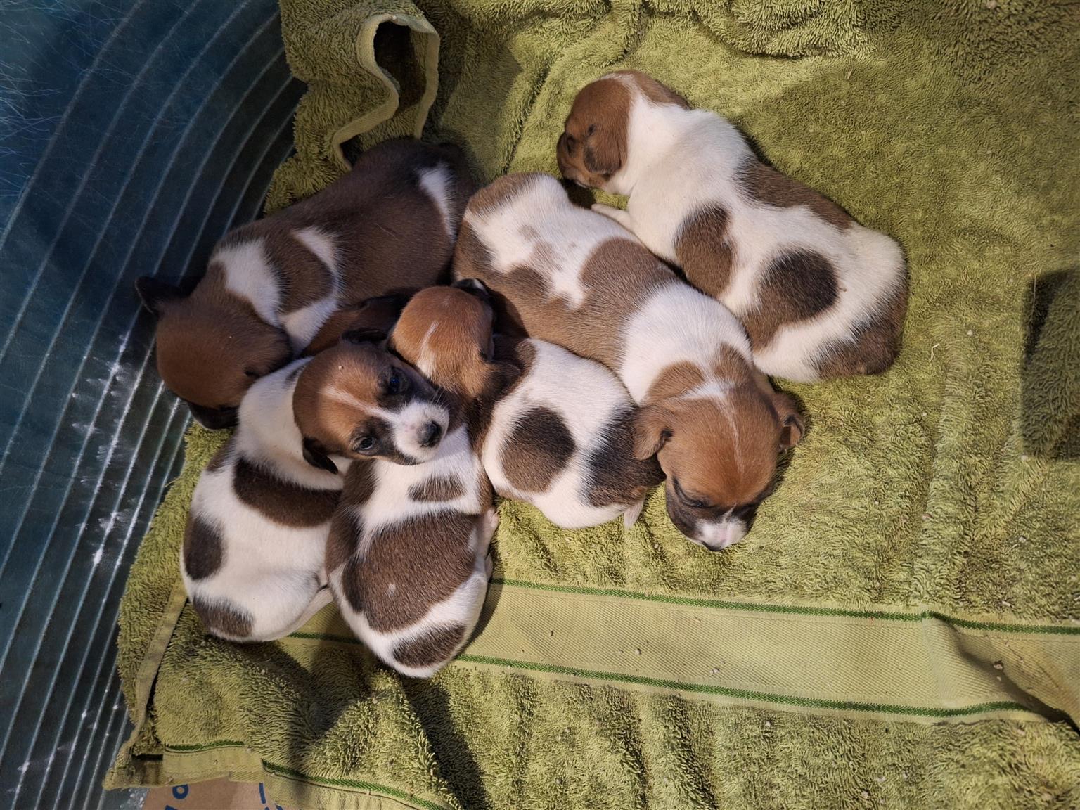 Jack Russel Puppies (short leg) They are loving, good with Children and very playful. There are 3 Males & 3 Females looking for their forever home. Puppies are currently 5 weeks old ready at 8 weeks.