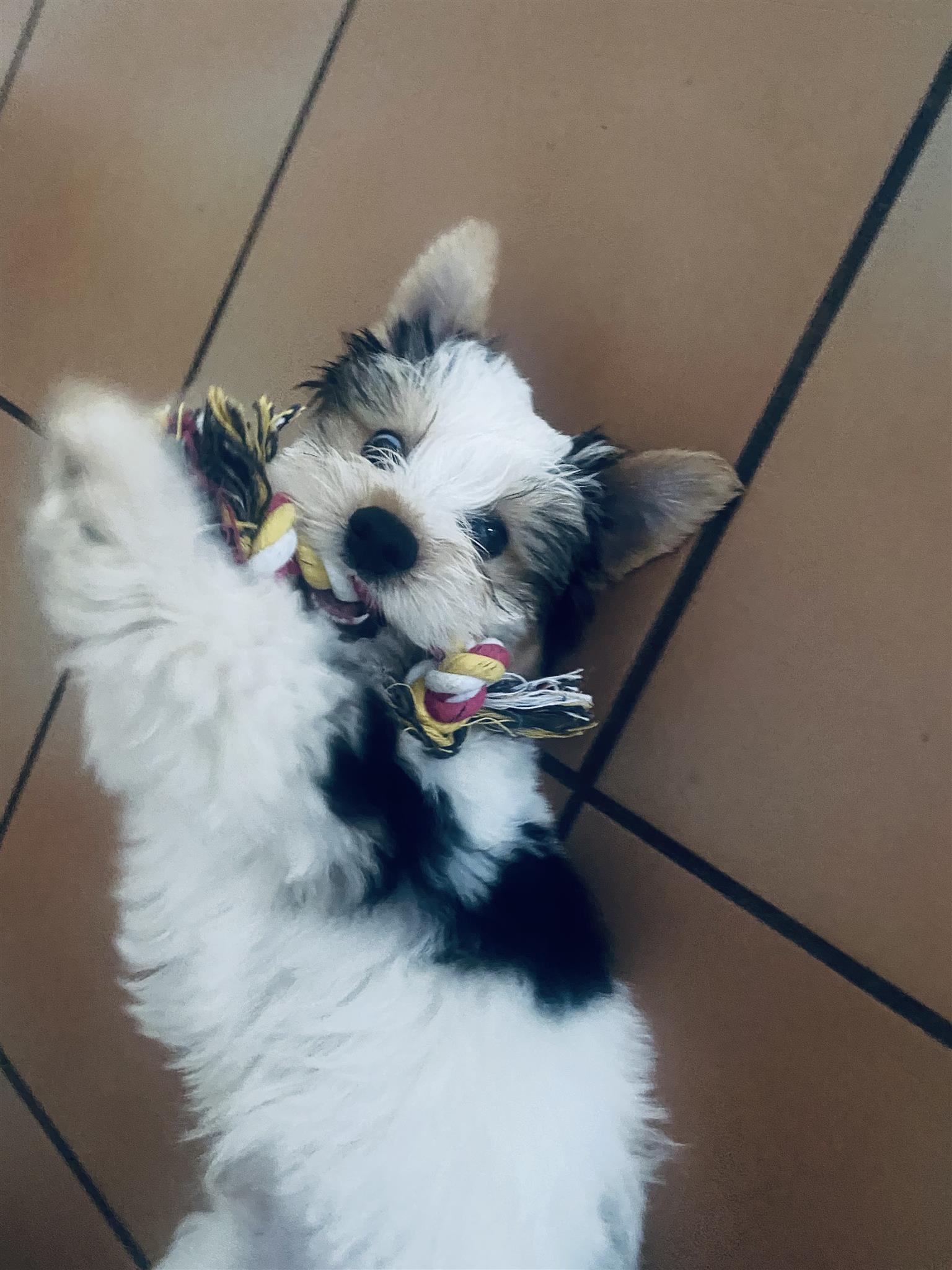 Biewer Terrier Yorkie Male. More details: , 2 months old, good with kids/pets, housetrained