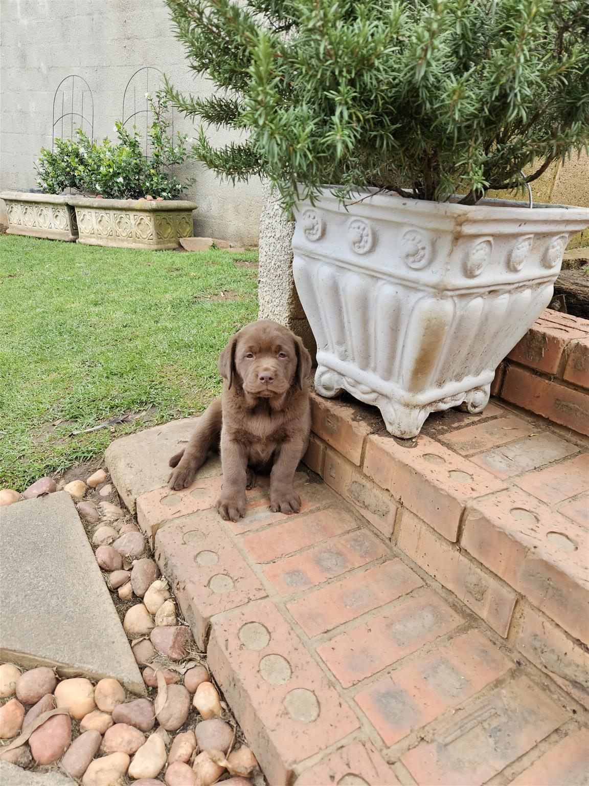 Brown male Labrador puppy. 8 weeks old. Vaccinated & dewormed. Parents are KUSA reg. Can deliver in Pta/Jhb on Sat the 11th.