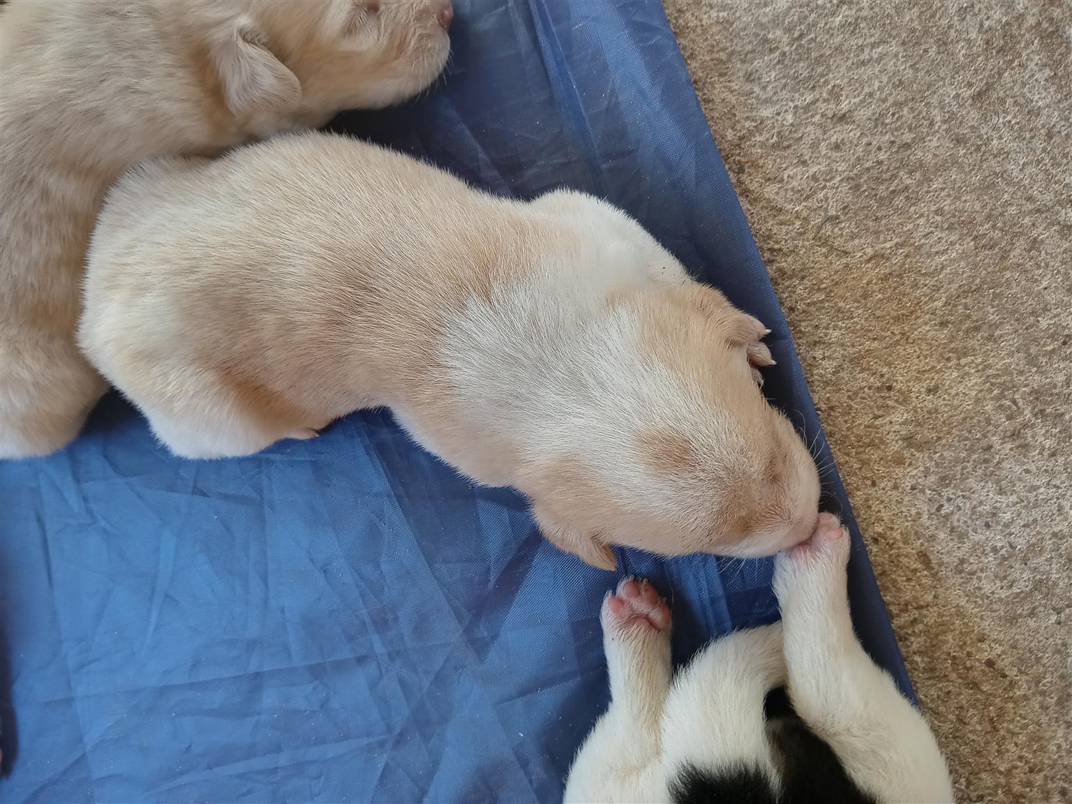 Ready in 8weeks as still drinking milk please.DOB 20Nov 2024.Lovely,cute 🥰 puppies in need of nice home.very playful.Mum is labrador X white.There are 2 males and 2 females left.Male is labrador and 1 mixed and female are 1 Terrier french bulldog and 1 Huskie.