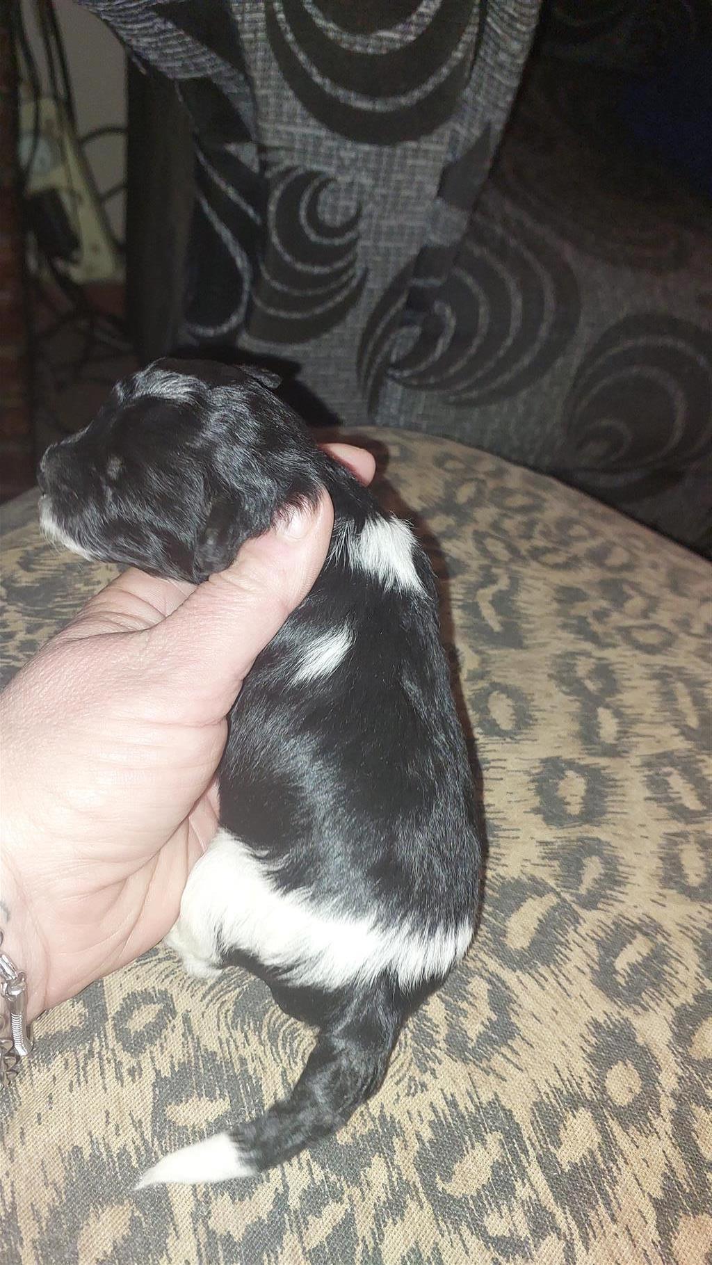Parti poodle for sale. Will be inoc, dewormed and ready from min age of 8 weeks old. Mom is a chocolate brown small poodle and dad is white maltese poodle