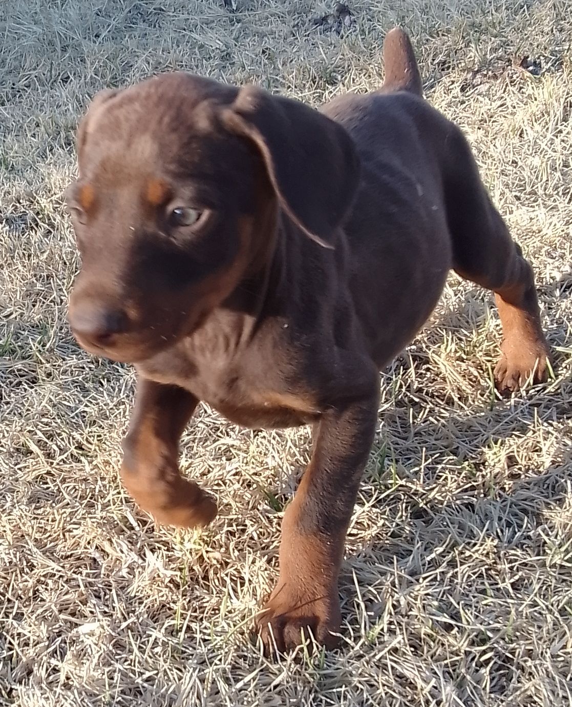 Doberman puppies. 6 weeks (ready at 10 weeks). Born 10 June. Injections done vet checked and dewormed . 3 Brown females ready to go.