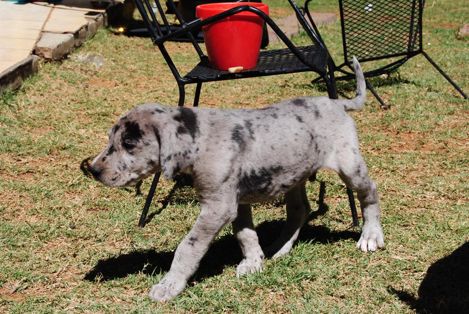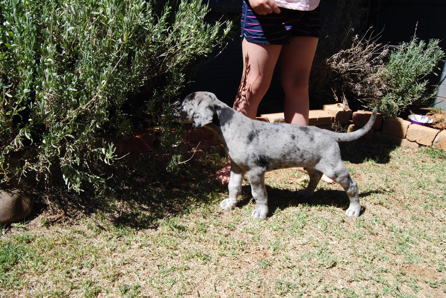 Last Great dane puppy left for sale. Male. Dewormed. Vet checked and vaccinated. 8 weeks old and ready for new home.