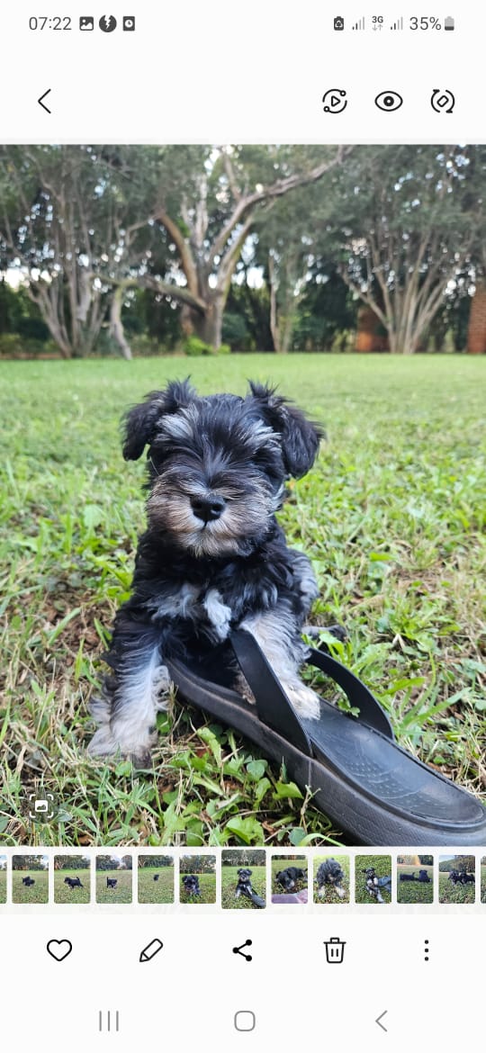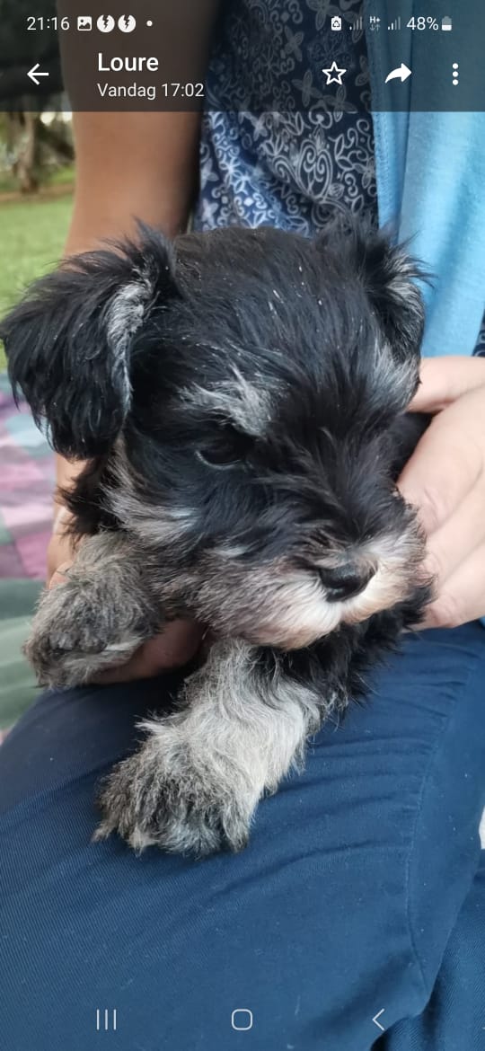 Looking for a playfull and affectionate friend? Look no further than our Schnauzer puppies! Vet-checked and up-to-date on vaccinations. Our Schnauzer puppies are the perfect fit! Intelligent, trainable, and full of personality. The Puppies are 8weeks old and ready for their new home. Contact us on 071 587 4949view more to schedule a visit today. Male R5500 Female R5800