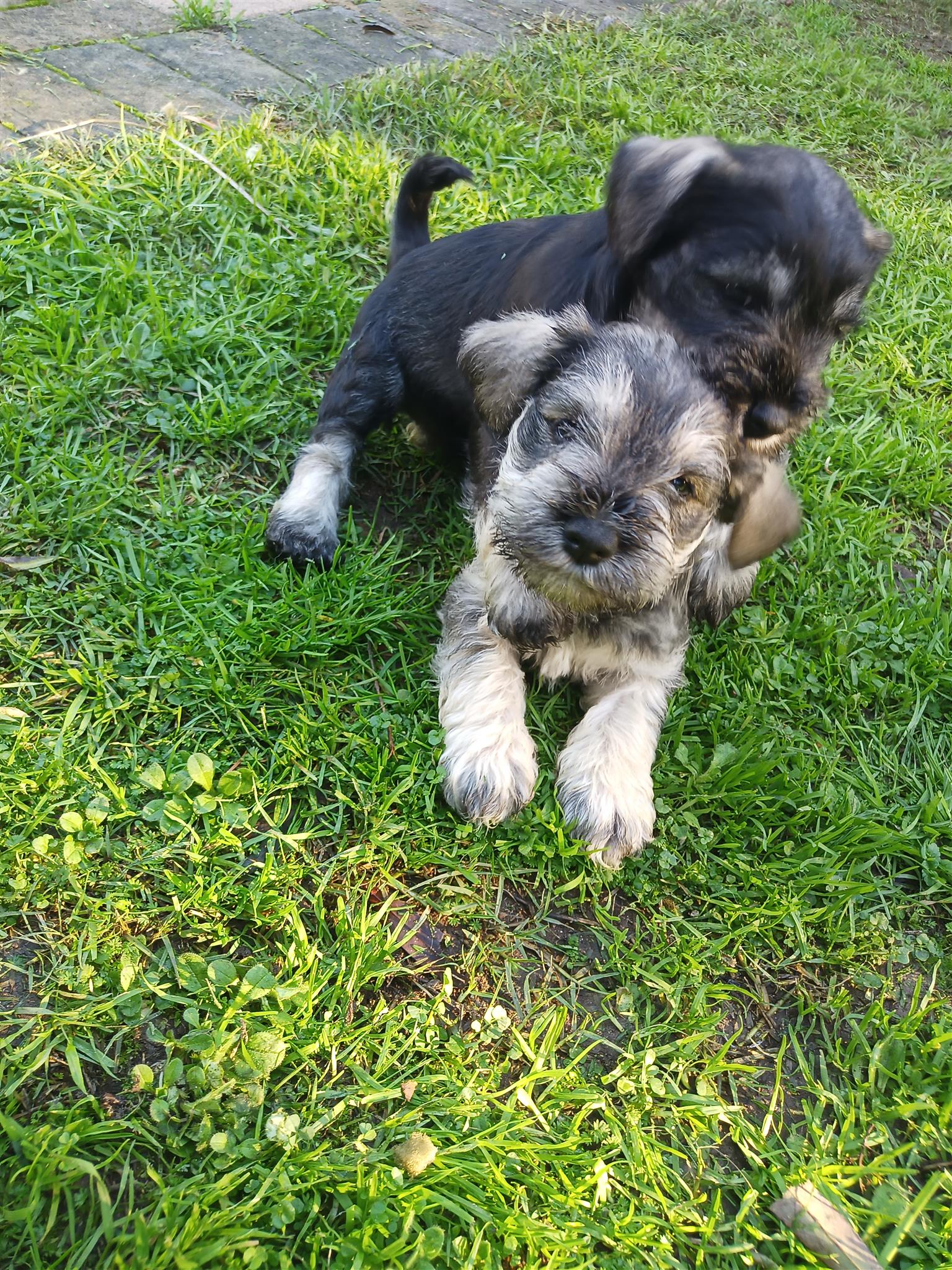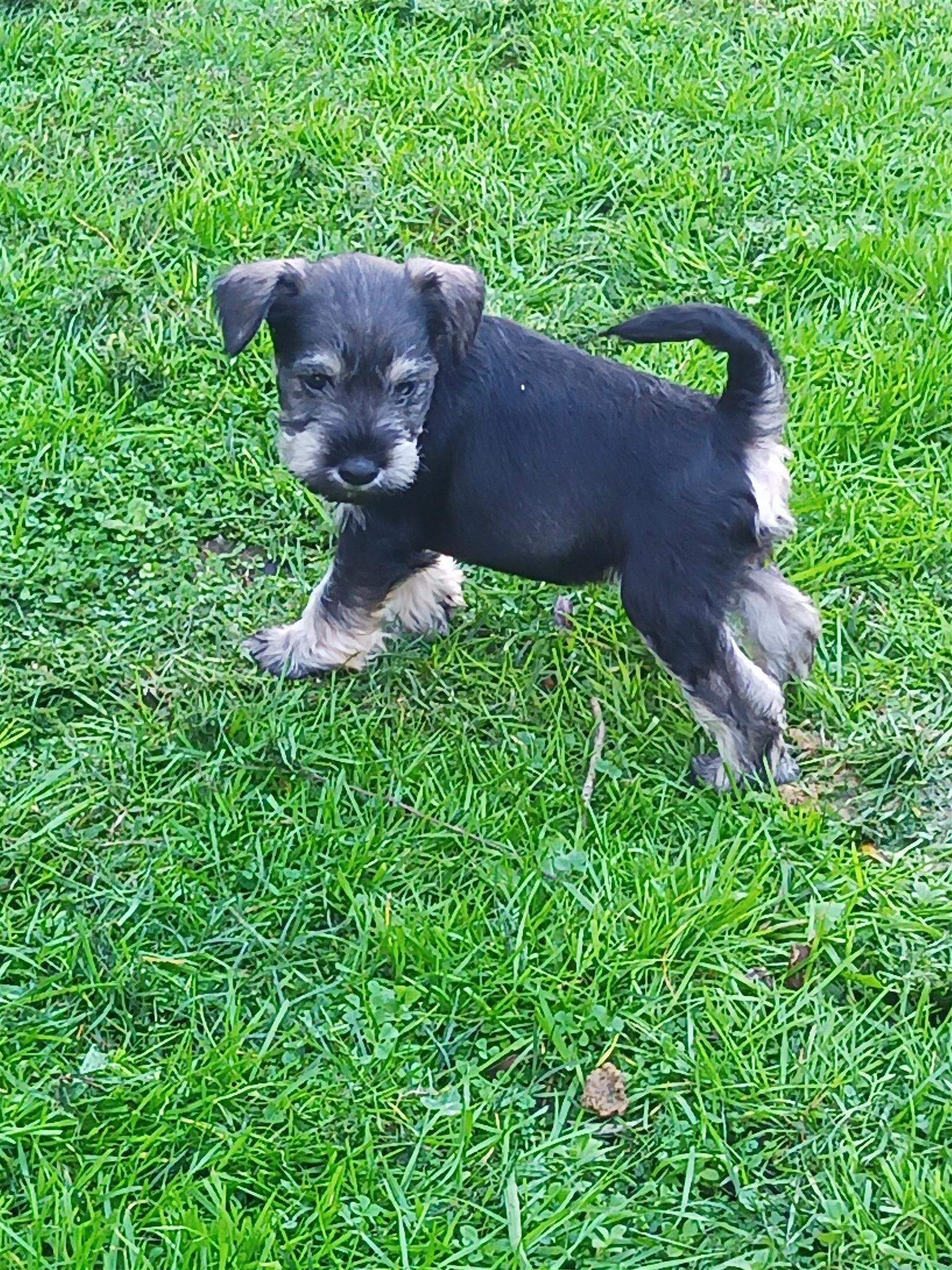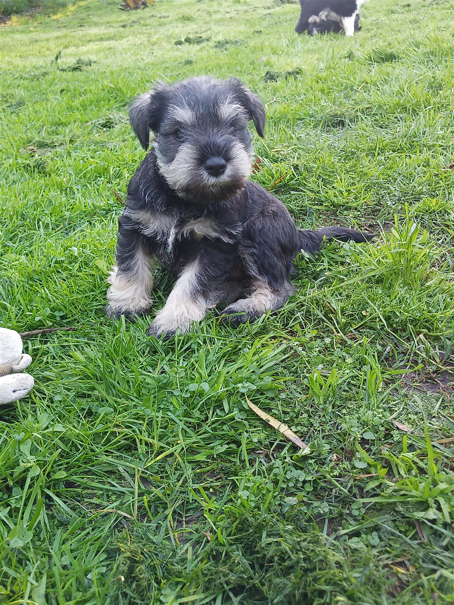 Miniature Pure bred Schnauzer puppies for sale. DOB 11 May 25. (Ready at 8 weeks)First vaccinations included. Father from a Namibian breeder. Beautiful, playful and allergy friendly. Looses no hair. Ideal for a smaller home.