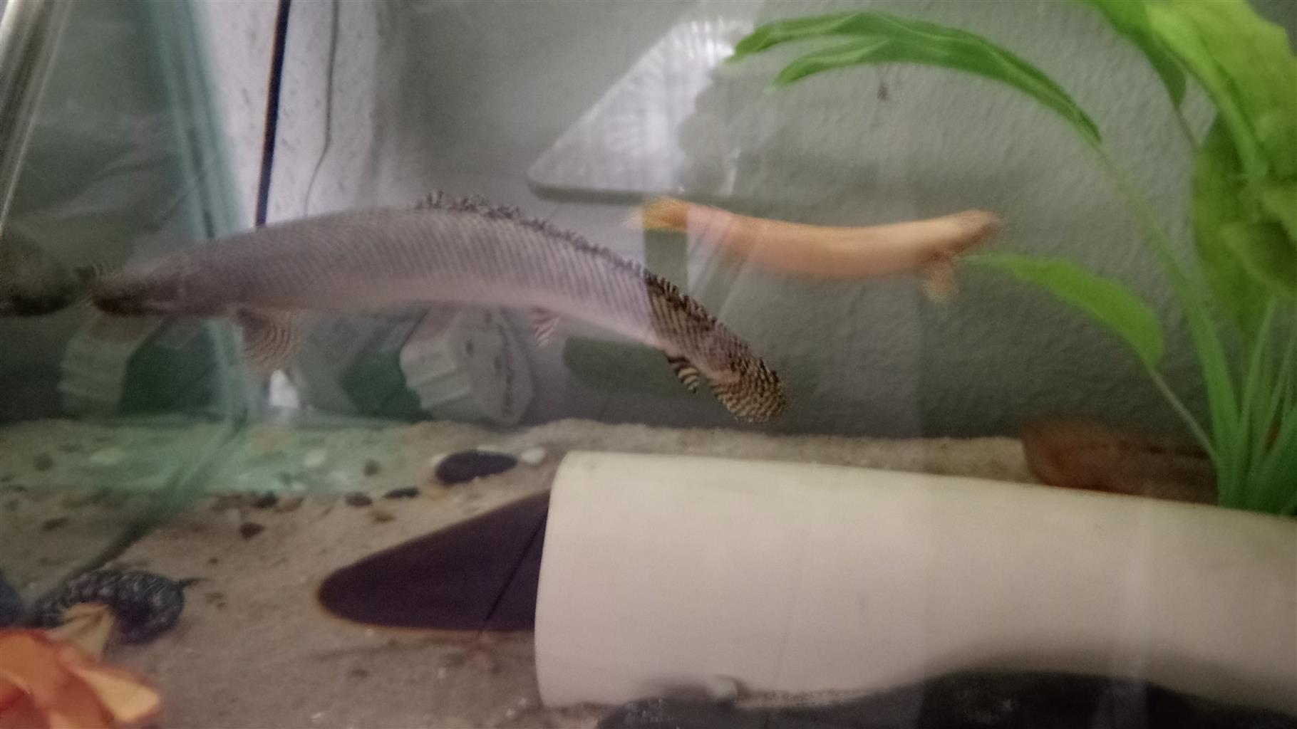 Bichir Ornatis (Polypeterus) x 2 for rehoming. Fish are approx. 45cm long and need a aquarium not less than 1,8m long and 600 wide. N.B. These fish are carnivorous.
