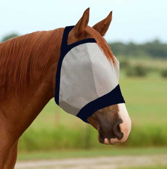 The Flymask contains pleats over the horse’s eyes and covers the horses face, excluding the nostrils.