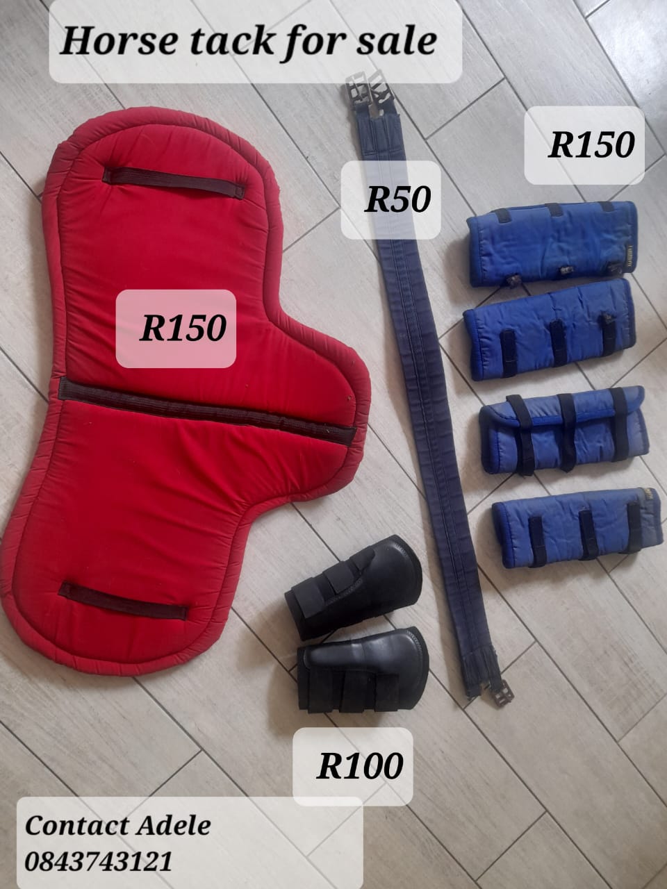 Numnah, girth, boxing boots and lunging boots. Excellent condition. Price includes all items in photo