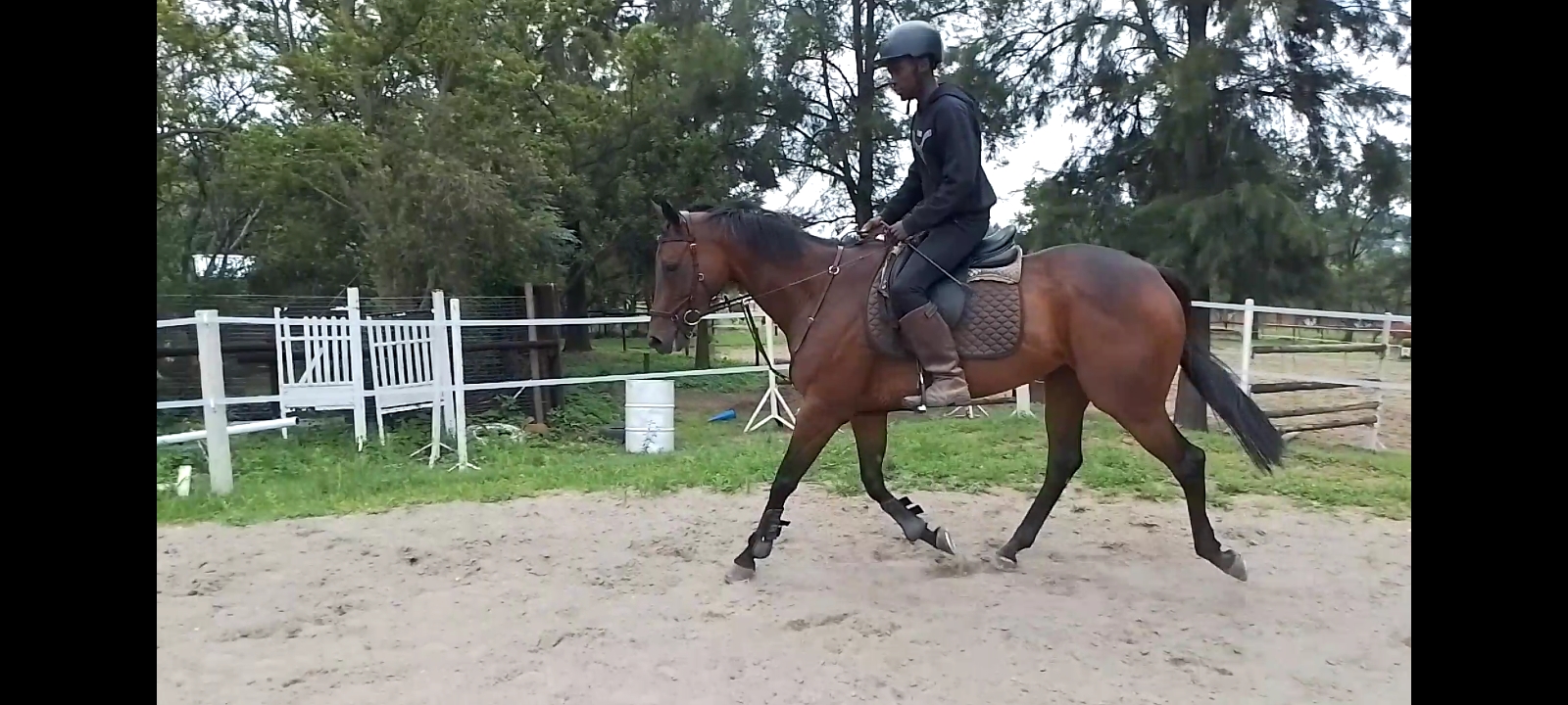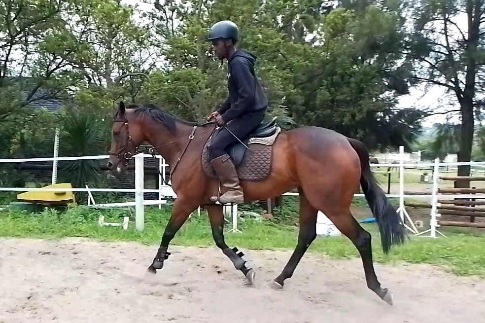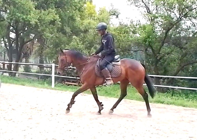 All her basics are in place, soft mouth and carries herself nicely. Suitable for a gutsy rider as she is forward and very fast on her feet in the canter, extremely easy in the trot.