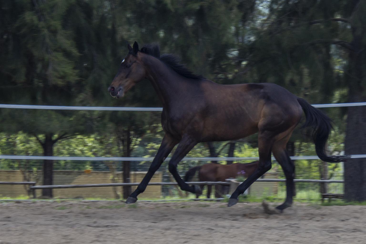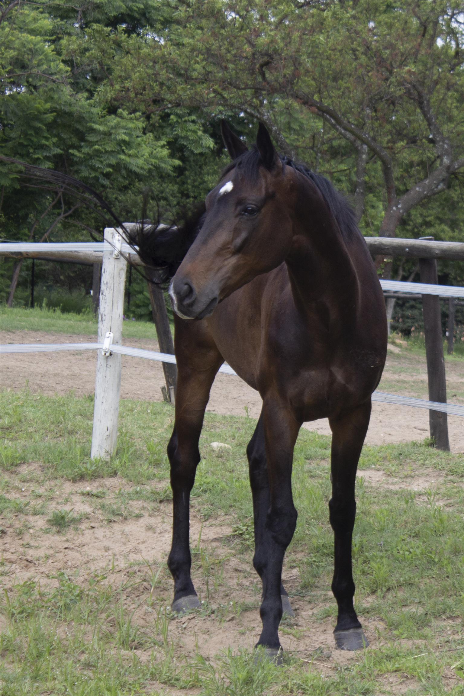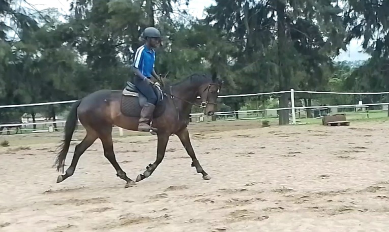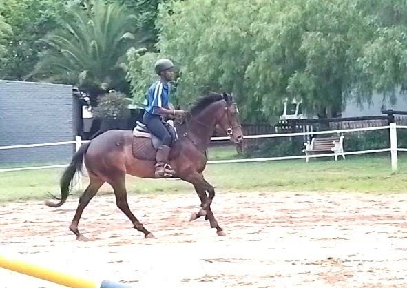 All her basics are in place, soft mouth and carries herself nicely. Suitable for a gutsy rider as she is forward and very fast on her feet in the canter, extremely easy in the trot.