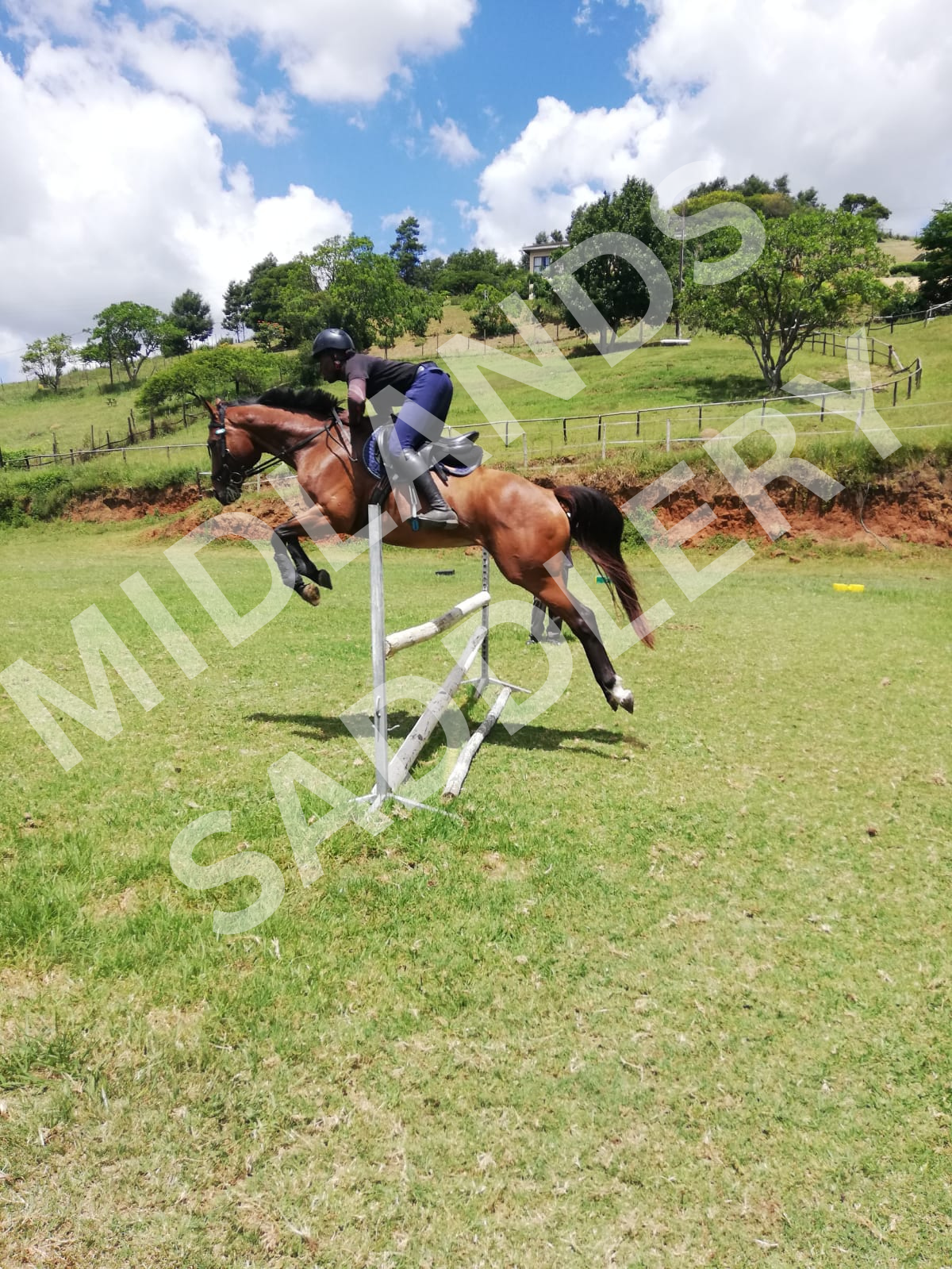 He has mostly jumped 60cm and 1 x 70cm at the training shows but has the scope to go higher and is jumping 1m at home.
