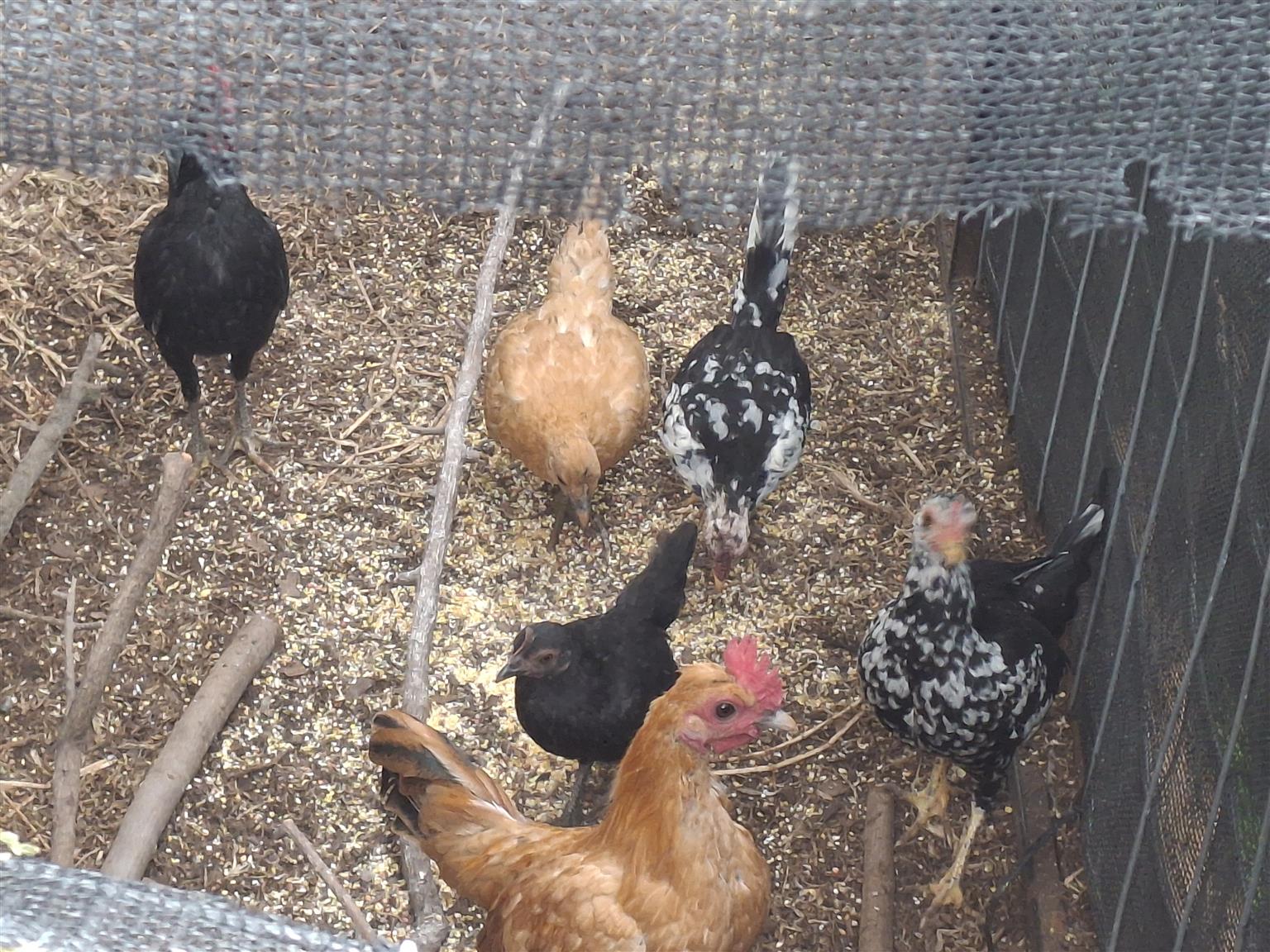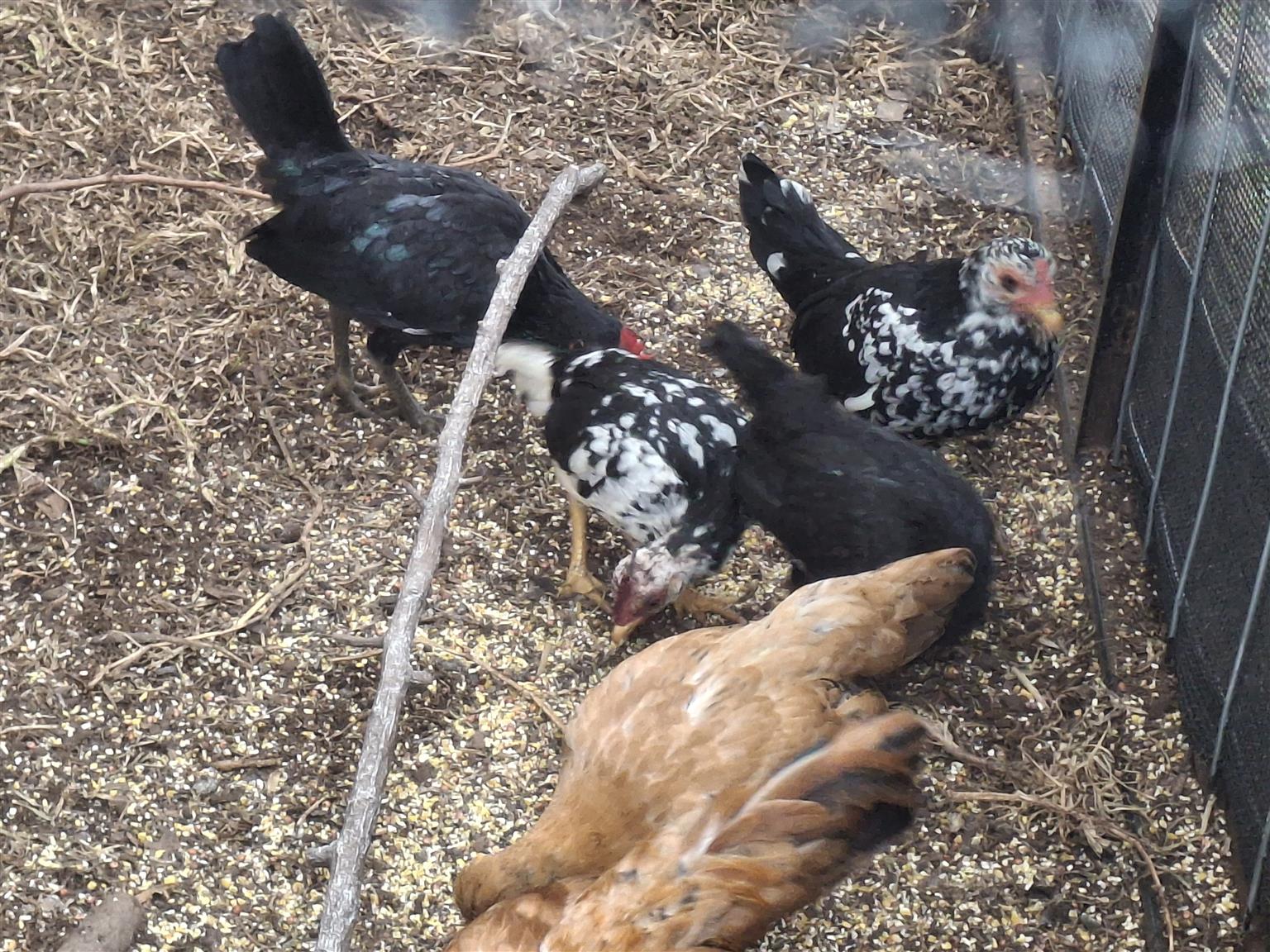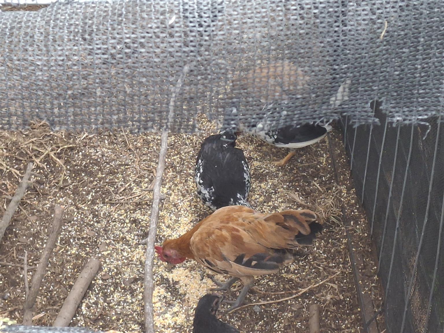 3 pairs Old English game chickens for sale. About 4 months old
