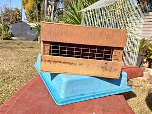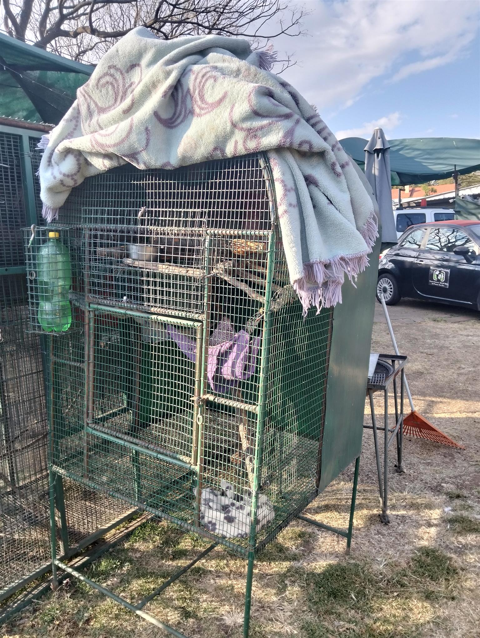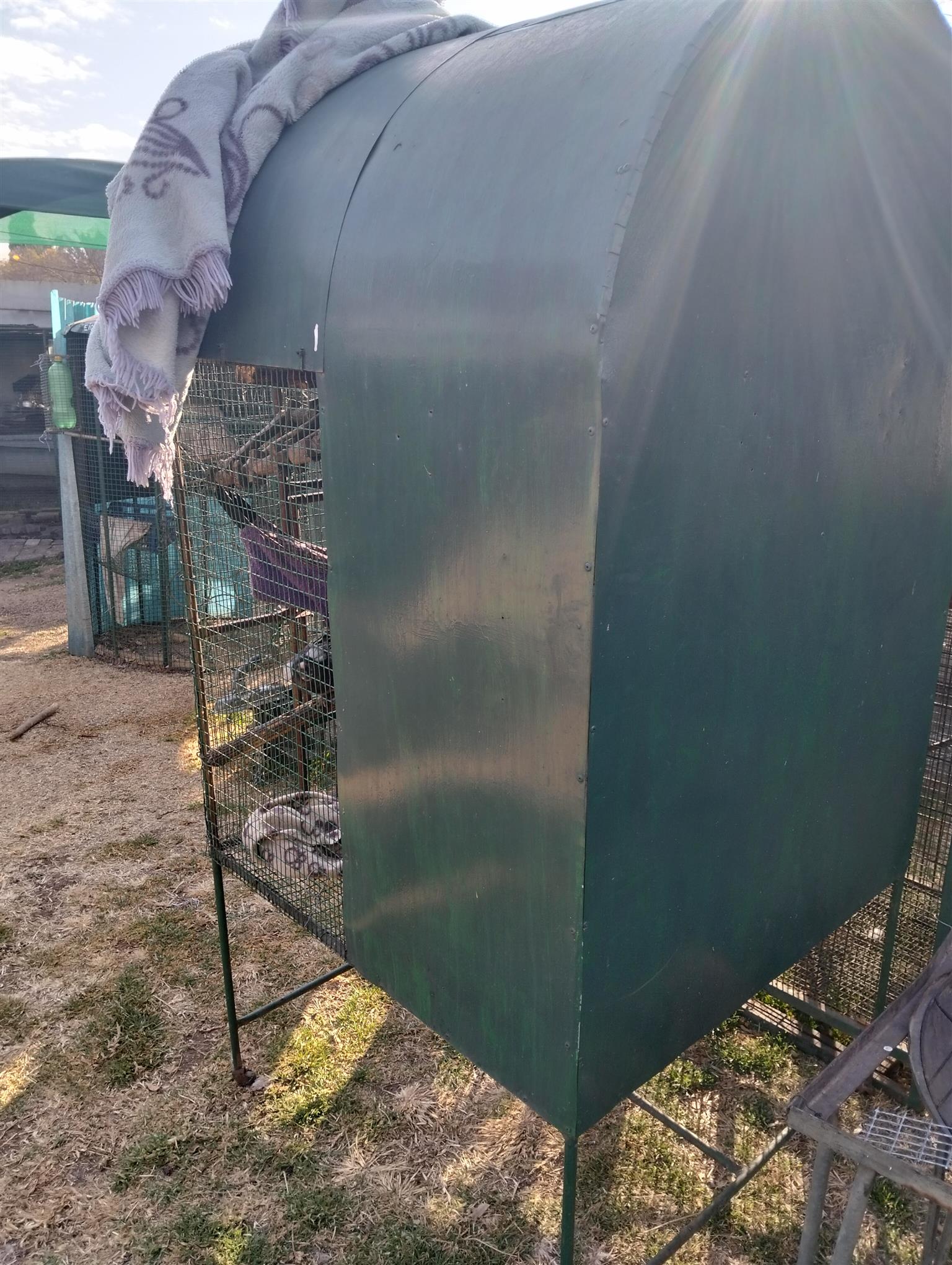 Second hand green painted portable cage one meter by one meter high with half a meter of legs. Ideal for birds and most small animals. Has a feeder. Phone calls only.COD
