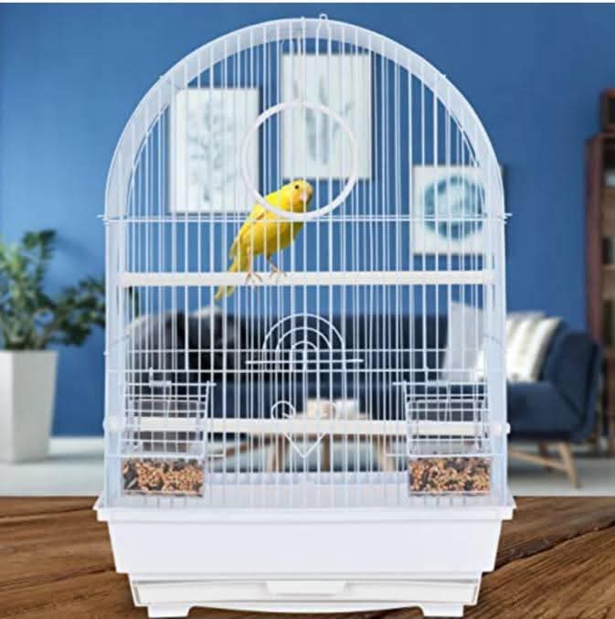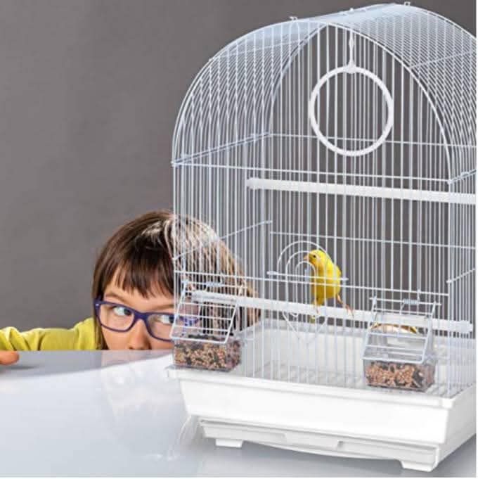 This beautifully decorated budgie cage will enhance the décor in your home. Your budgie will spend many happy hours in its cage. It has two perches on different levels and a swing with no less than three bells. It comes complete with seed and water bowls. The front door is large and has a heart-shape decoration. There is a handle on top to move it to a different location or to suspend it. It has a deep plastic pull-out tray which makes cleaning easy. Also ideal for finchies canaries etc Dimensions: 32 x 27 x 49cm Available at 57 valerie road memorial park hillary at Kies Pets