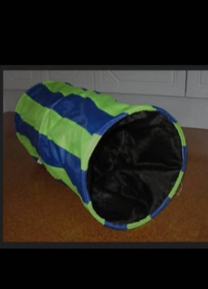 Engage your feline friend in an exciting game of tunnelling with this blue and green striped cat crinkle tunnel. this interactive toy is perfect for your cat's entertainment. This design offers a unique experience for your pet, while the blue and green colours add a touch of fun to the playtime. Crafted with care and attention to detail, this toy is sure to captivate your cat's imagination and keep them entertained for hours. Whether you have a young or old cat, this toy is suitable for all ages and is a must-have addition to your pet's toy collection. Get ready to watch your cat's playful antics as they navigate through this fun and engaging tunnel. Available at 57 valerie road memorial park hillary at Kies Pets