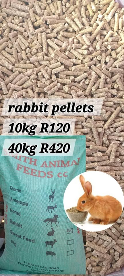 Rabbit Pellets are suitable for Rabbits and Guinea pigs Ingredients: Contains a mixture of Lucern Brewers (Rice) Salt Ideal for all types of rabbits and guinea pigs 5kg R70 10kg R120 40kg R450 Available at 57 valerie road memorial park hillary at Kies Pets