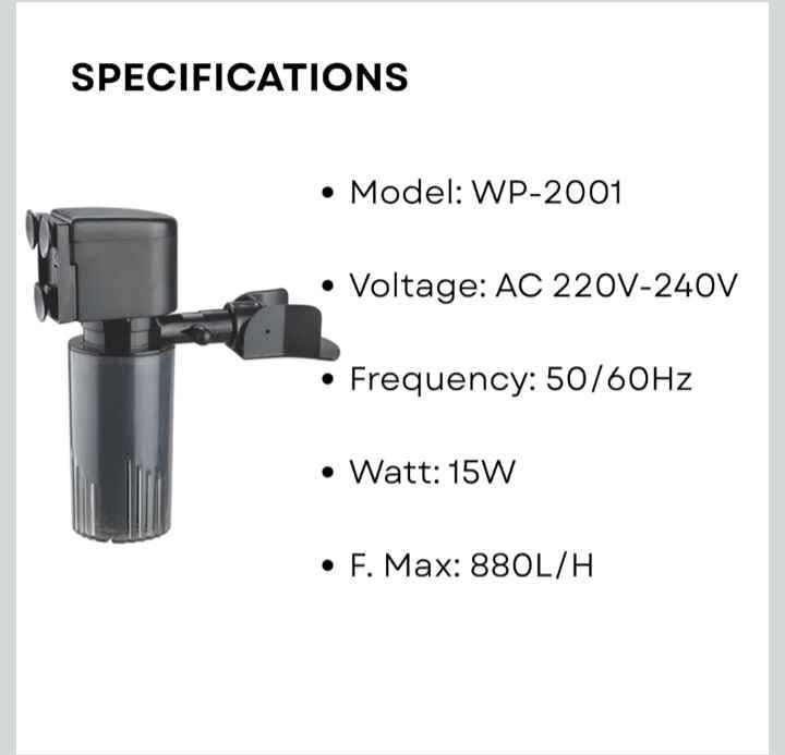 compact, fully submersible internal aquarium filter designed to provide efficient mechanical filtration for small to medium-sized freshwater and saltwater aquariums. Its compact design and quiet operation make it a suitable choice for aquariums up to 80 liters. Now available at 57 valerie road memorial park hillary at Kies pets