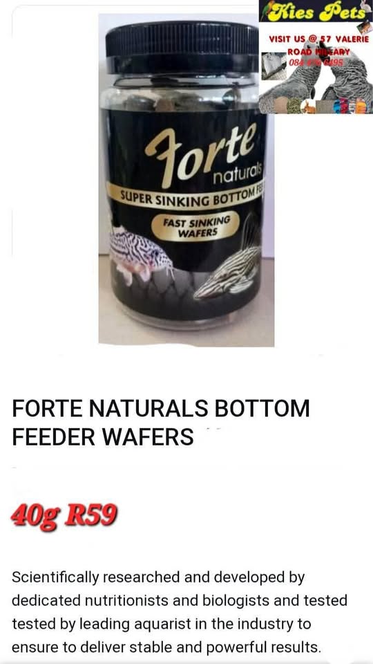 Scientifically researched and developed by dedicated nutritionists and biologists and tested tested by leading aquarist in the industry to ensure to deliver stable and powerful results This a natural product and contains no artificial colourants. Nutritional analysis: Moisture 11%%, Protein 38%%, Fat 4.2%%, Fibre 1.5%%, Calcium 1.2%%, Total phosphorus. Size: fast sinking wafers for bottom feeders 40g