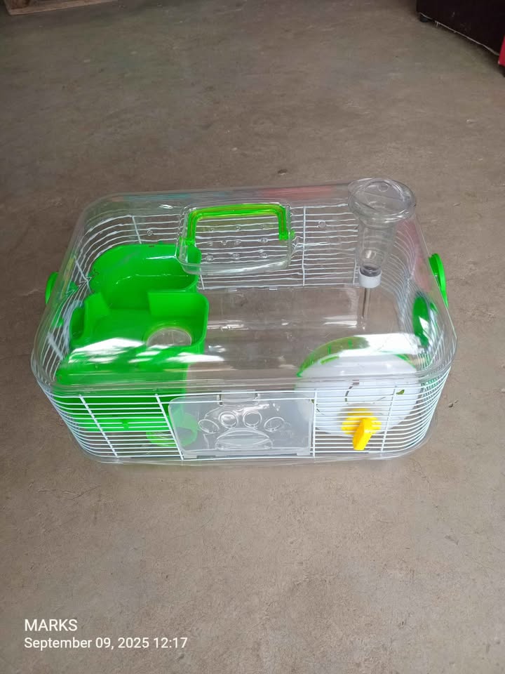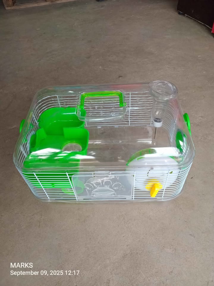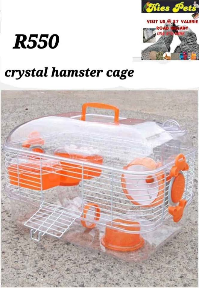 Beautiful complete transparent hamster cage available at 57 valerie road memorial park hillary at Kies pets. Comes complete with water bottle ,feeding bow etc