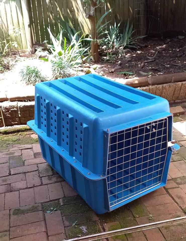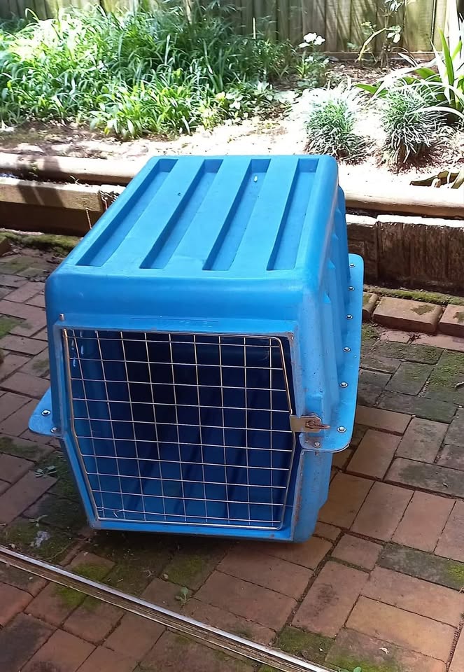 Mobile kennel/flight carrier box for large breed dogs. Heavy duty polyethylene and stainless steel Width 60cm Height 70cm Length 100cm R2950 Tel 0,6,8,5,0,5,5,6,6,4 Durban