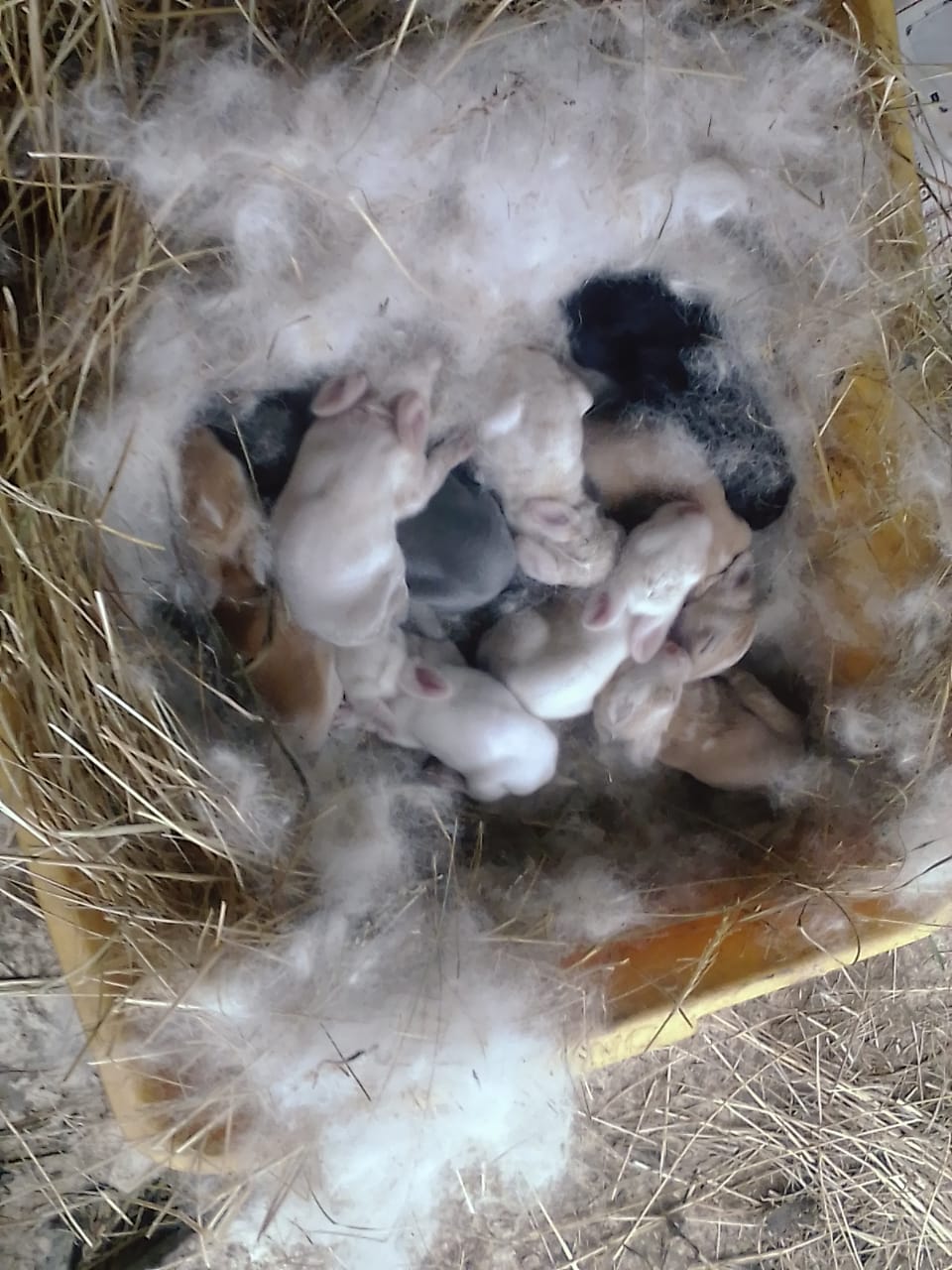 Rabbits 6weeks old, there's 9 left 5 from one breeding pair then other 4 from nederlander pair. Photo taken when they were only a week old WhatsApp me for updated pic