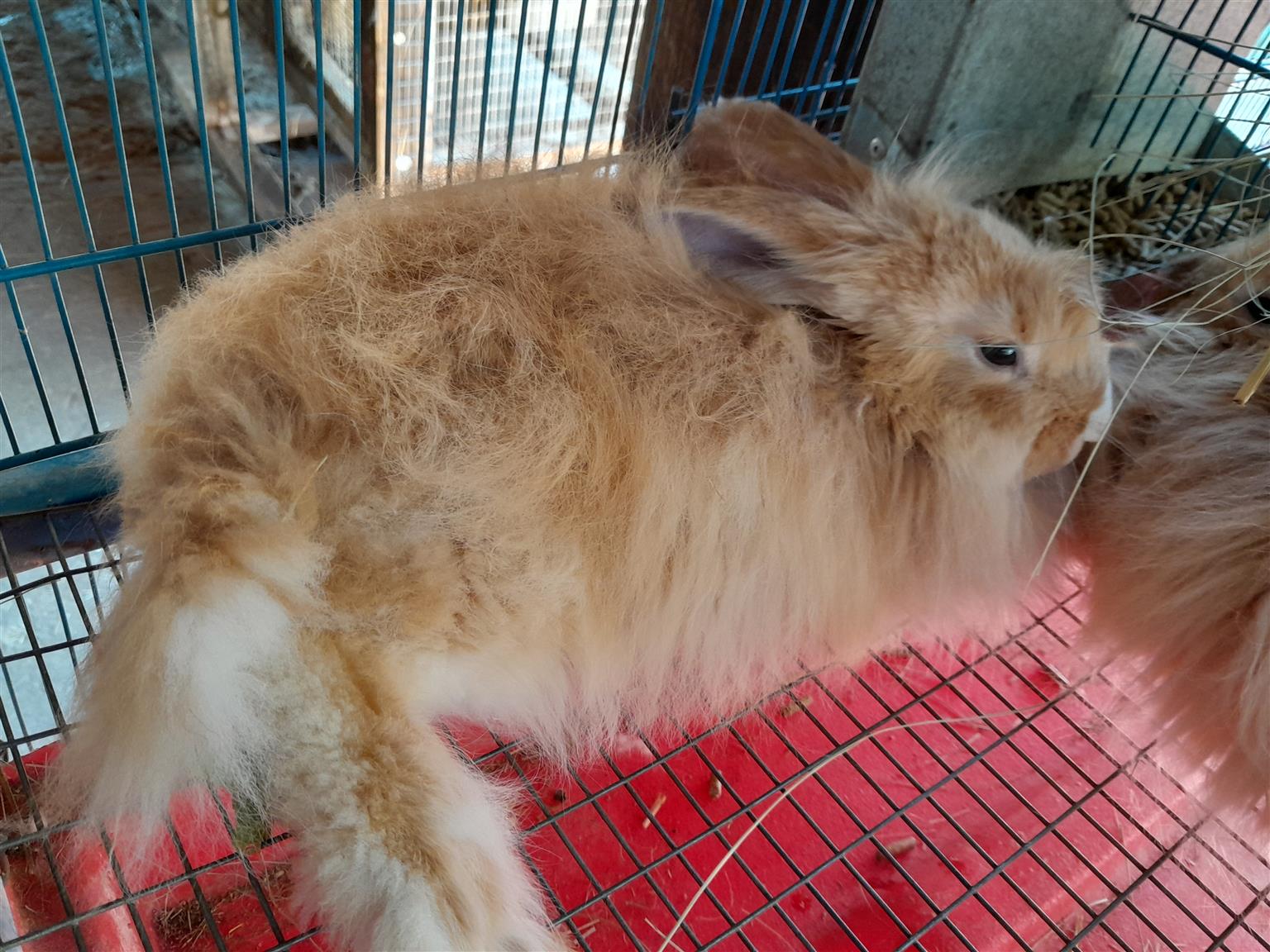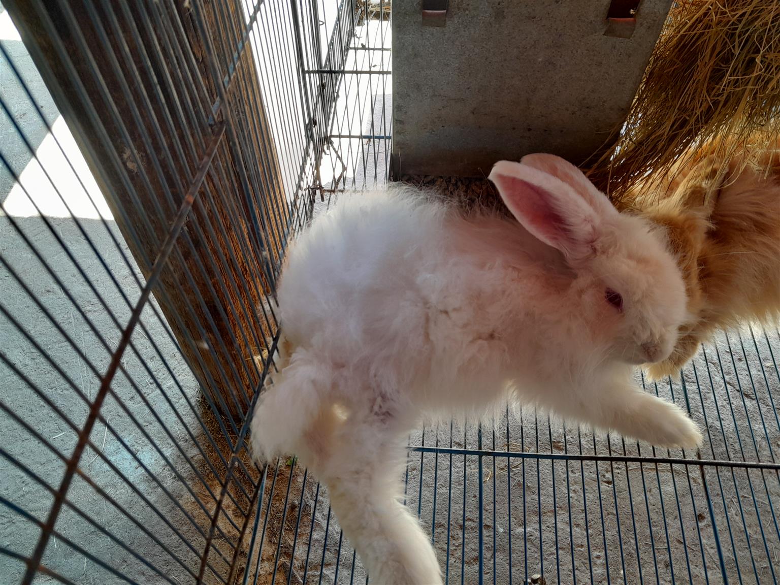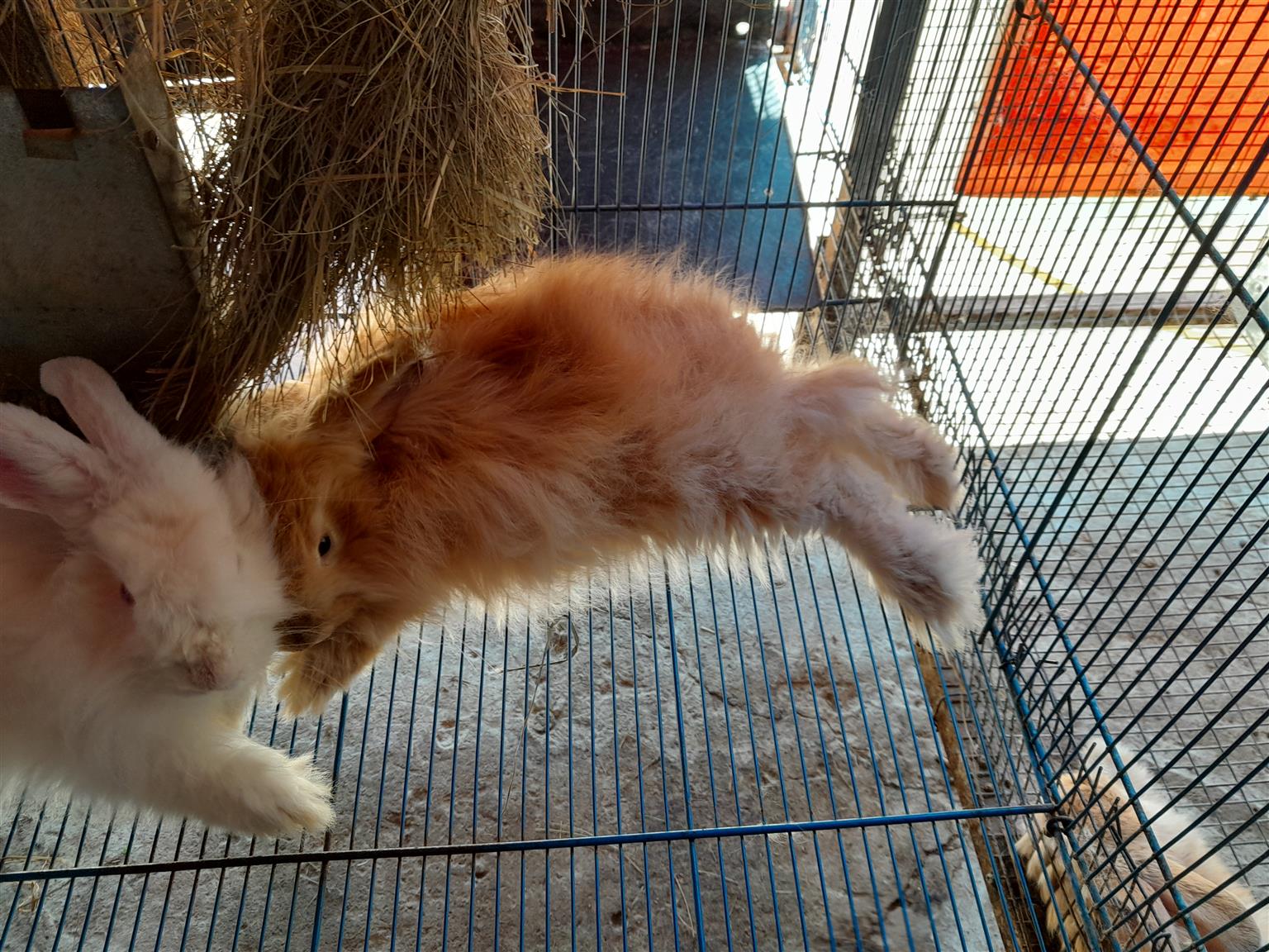 8 to 12 week old angoras male and female. Only two females and 5 males available. They are fully groomed and well cared for. Prices range according to age from 250 to 350. White and red available.